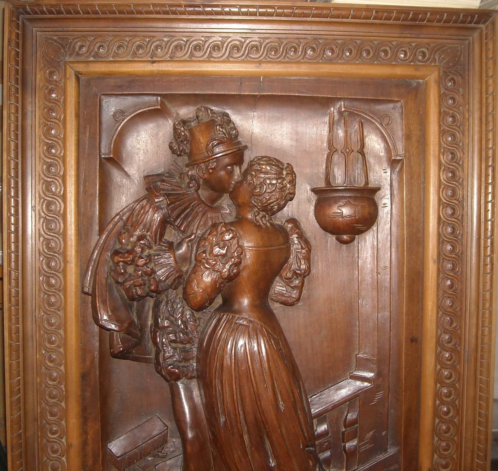 Arte, Artigianato, Ebanisteria: Antica Scultura Lignea, Scena Galante Decorativa