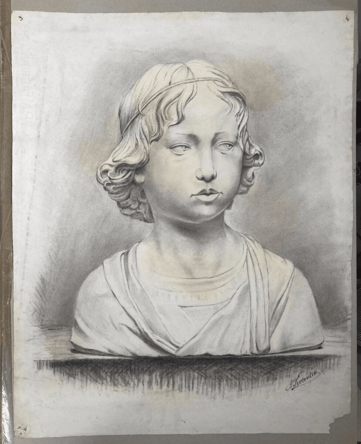 Arte, Scultura, Ritratto Di Giovinetto, Antico Disegno A Carboncino, Firma Vivenzio