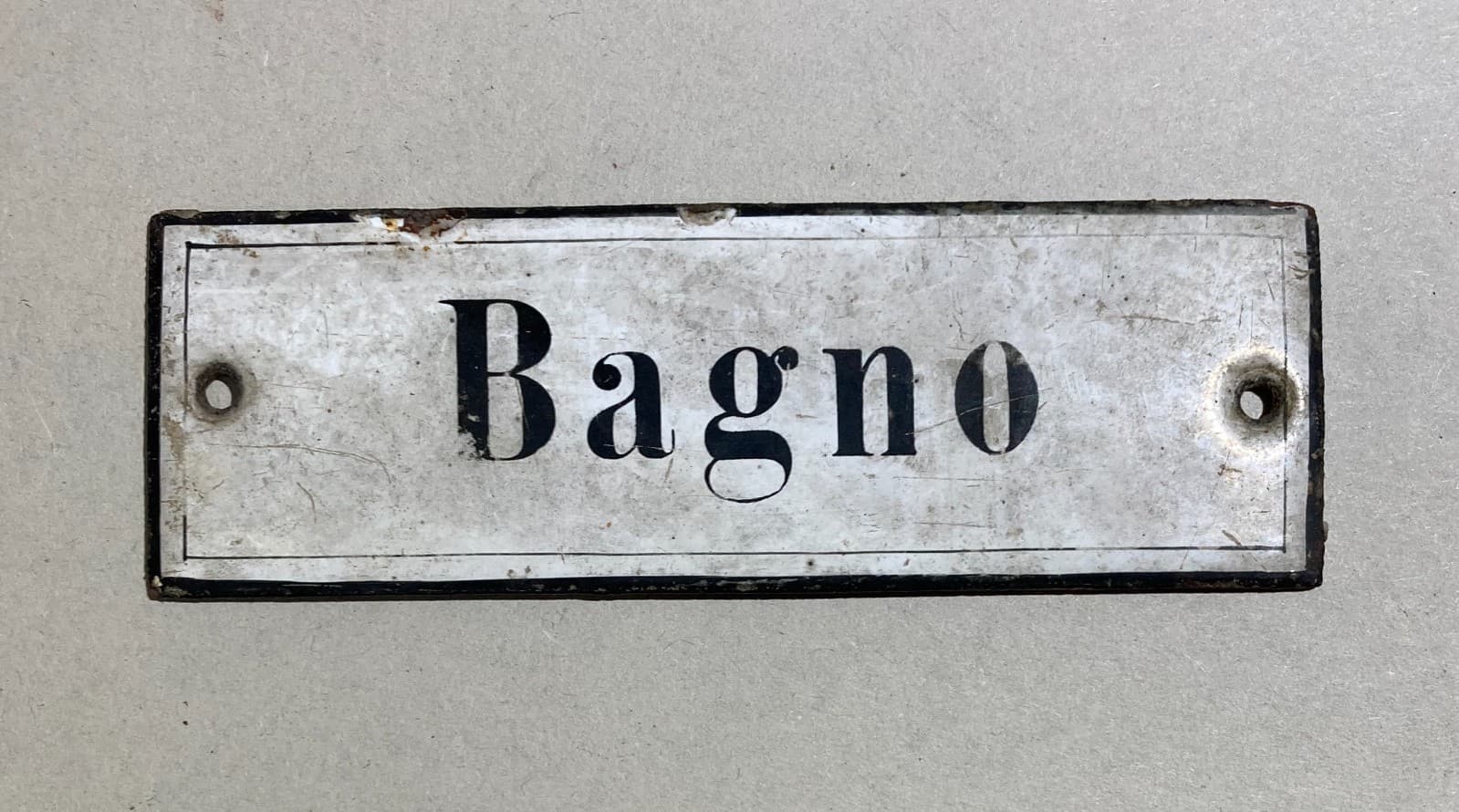 Piccola Targa d'Epoca In Metallo Porcellanato Per Bagno O Toilette
