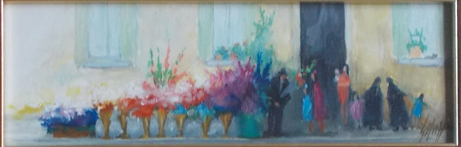 Arte Del Novecento: Dipinto Decorativo Con Fioraio E Fiori. Opera Firmata