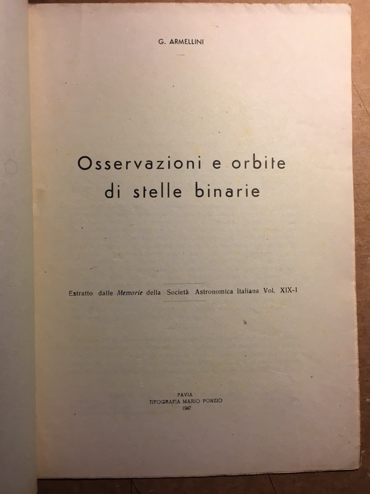 Astronomia: Armellini, Stelle Binarie, Orbite, Cielo, Monte Mario. Edizione d'Epoca.