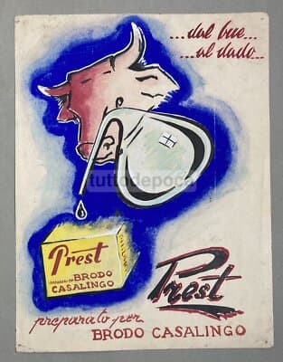 Brodo Prest: Bozzetto Pubblicitario Originale, Metà Del '900