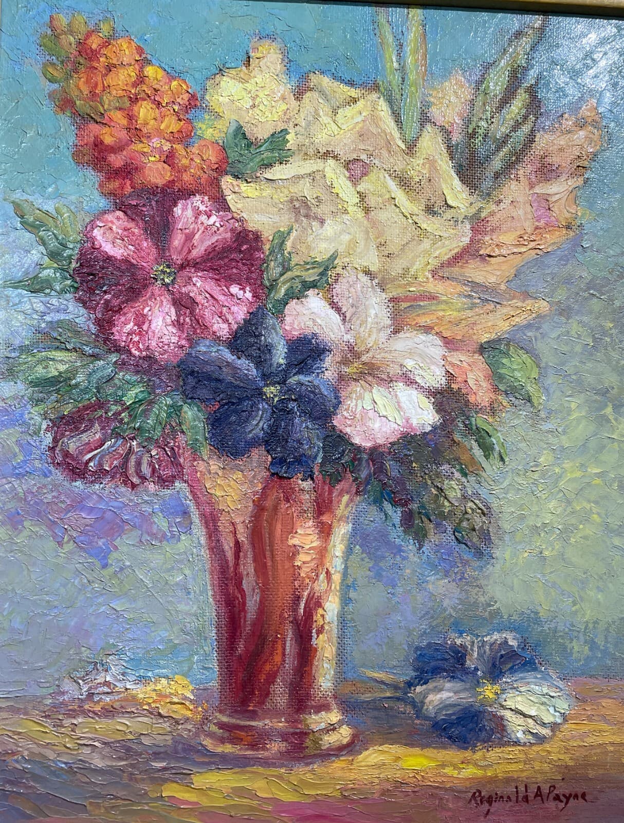 Arte Moderna Artista Reginald Payne Decorativo Dipinto Originale Vaso Con Fiori