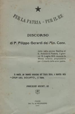 Gerardi, Monarchia Savoia, Per La Patria E Per Il Re, Padova, 1915