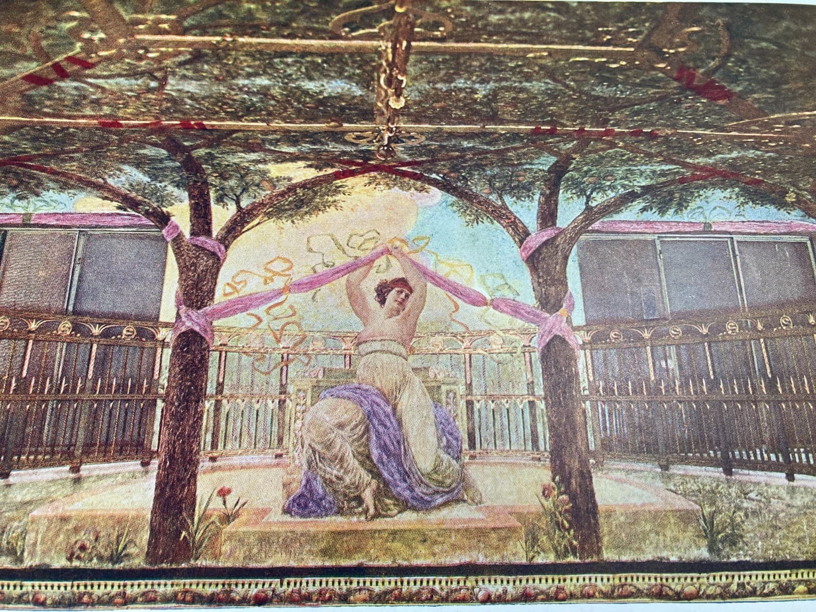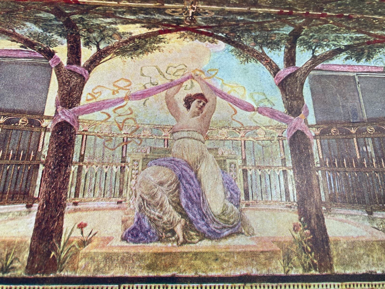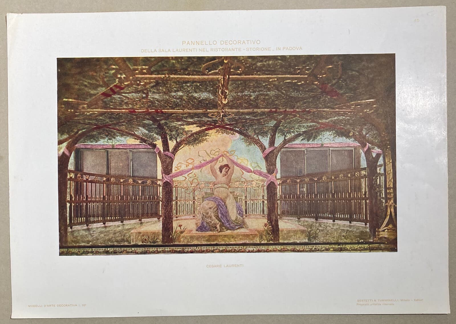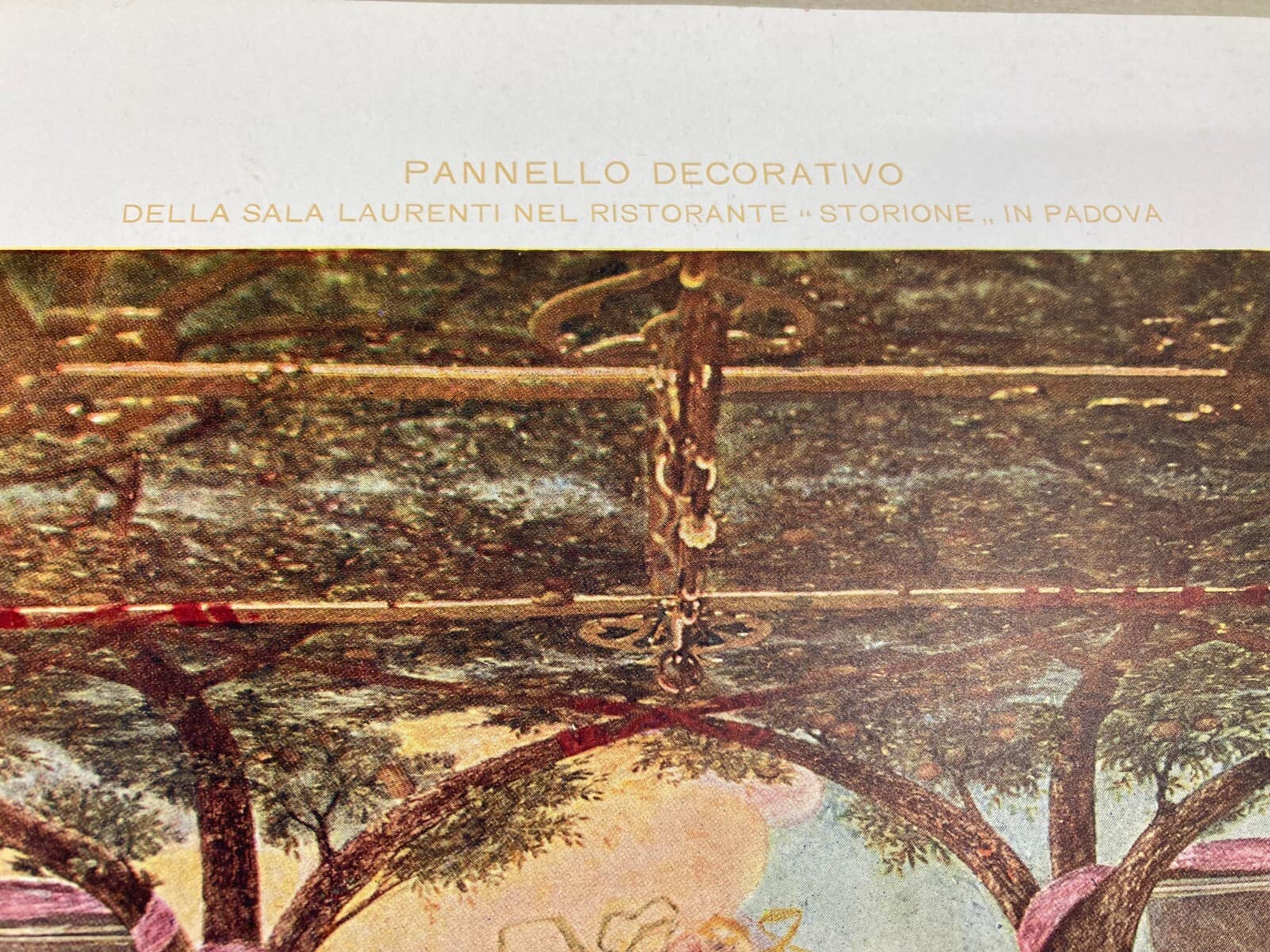 Padova: Pannello Decorativo Della Sala Laurenti Nel Ristorante Storione. Antica Stampa A Colori.
