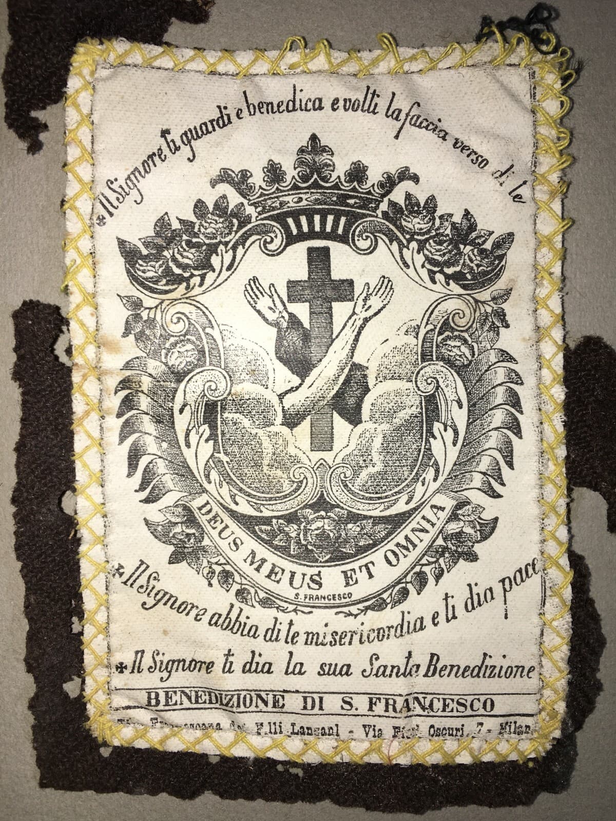 Stampa Antica Popolare Devozionale: Benedizione Di San Francesco Su Tessuto