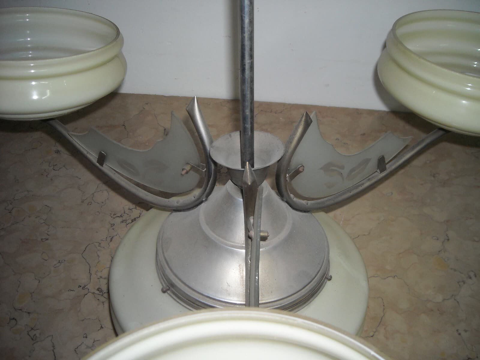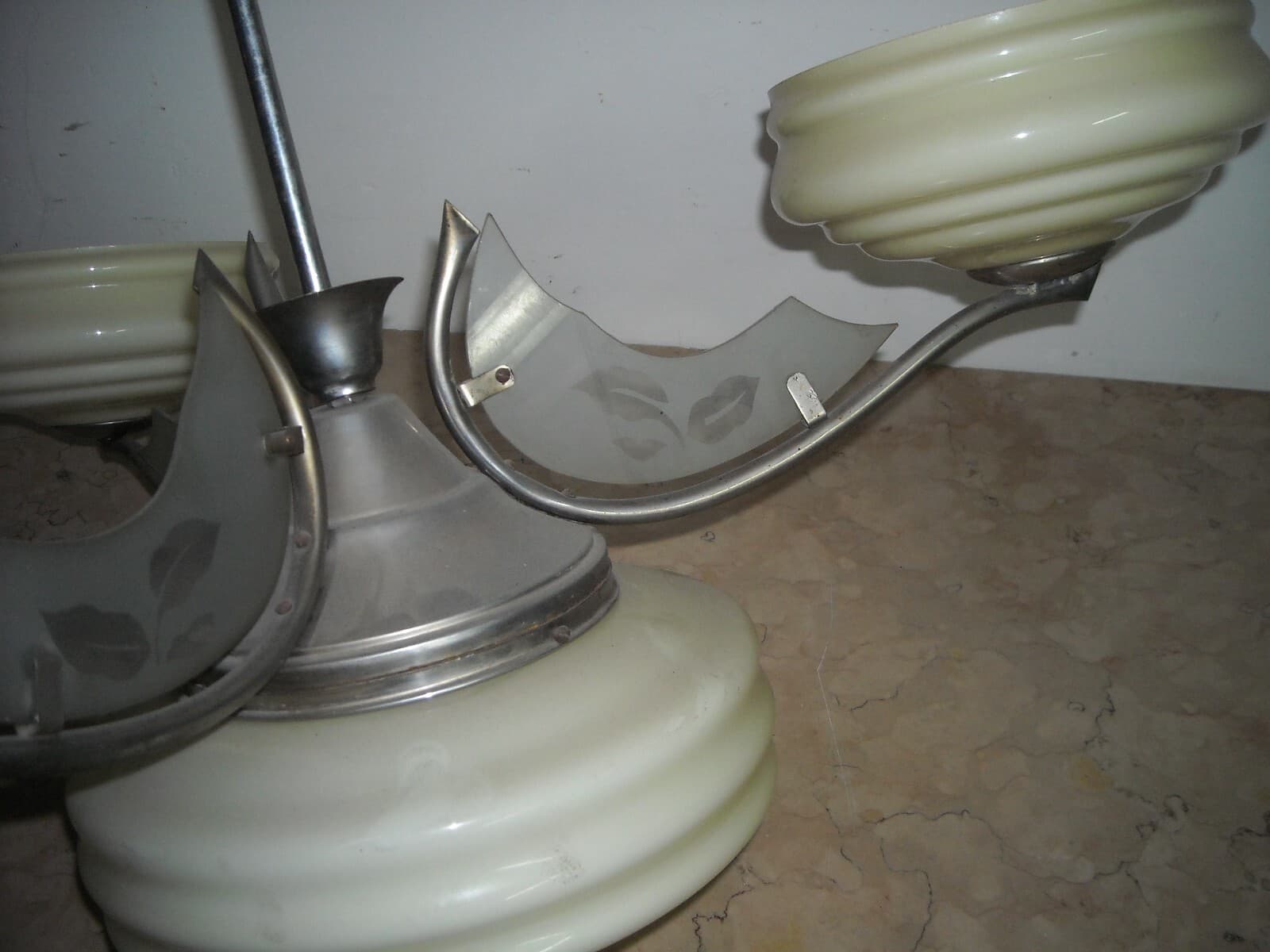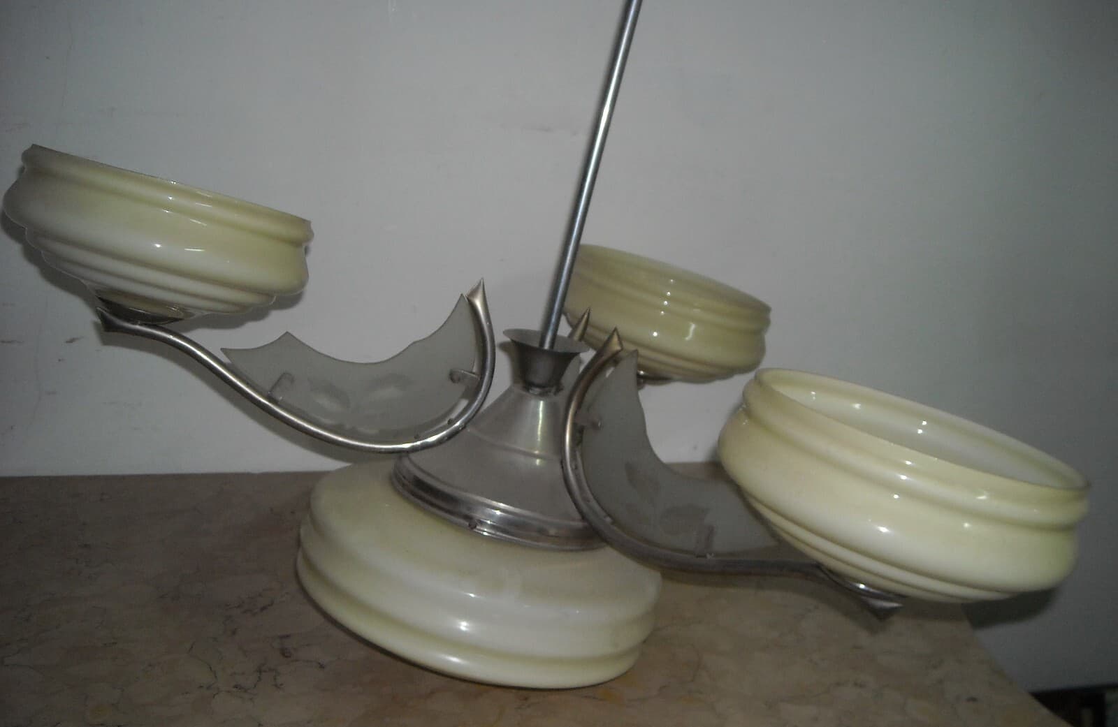 Lampadario Déco In Vetro Opalescente E Metallo Cromato