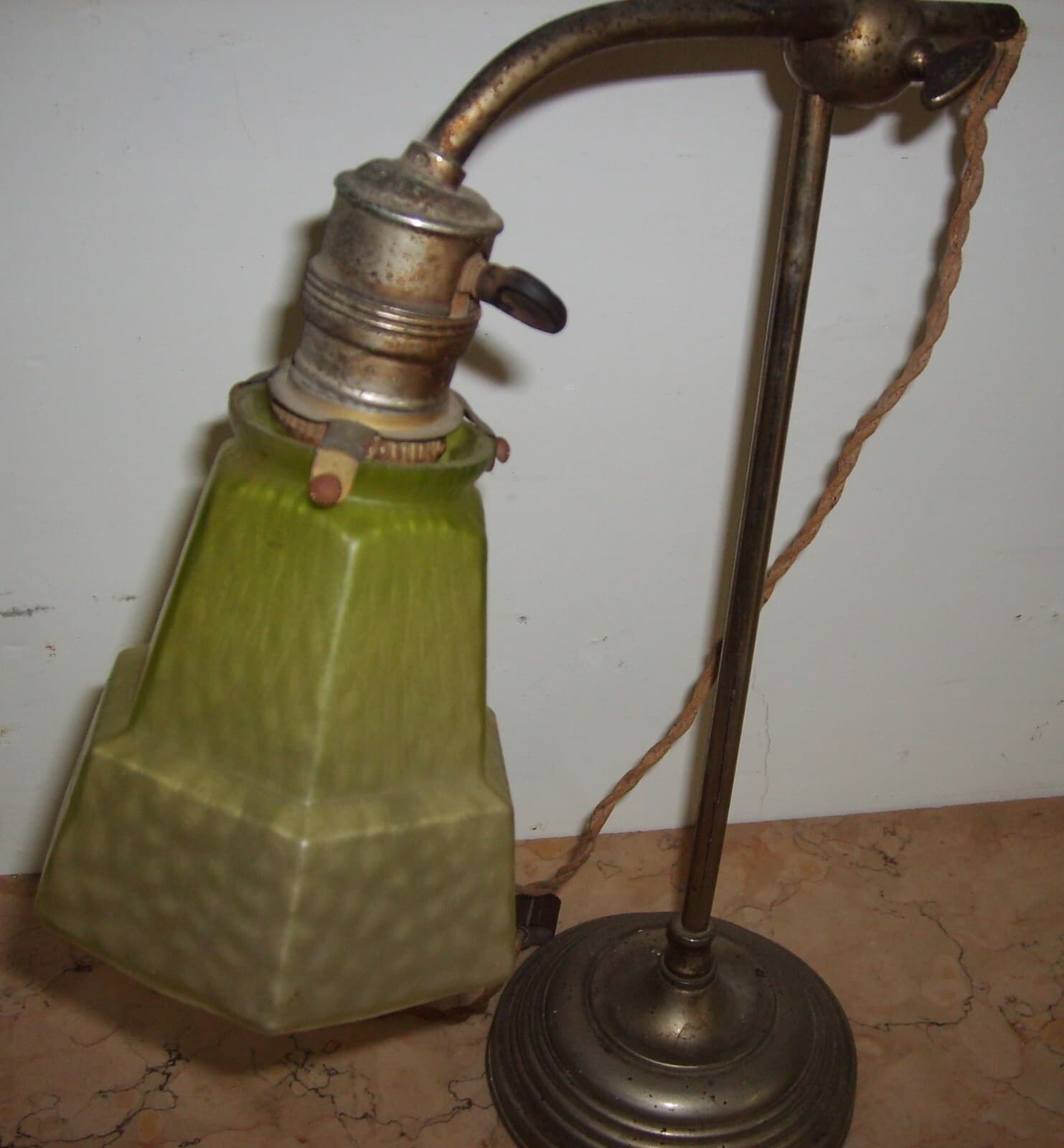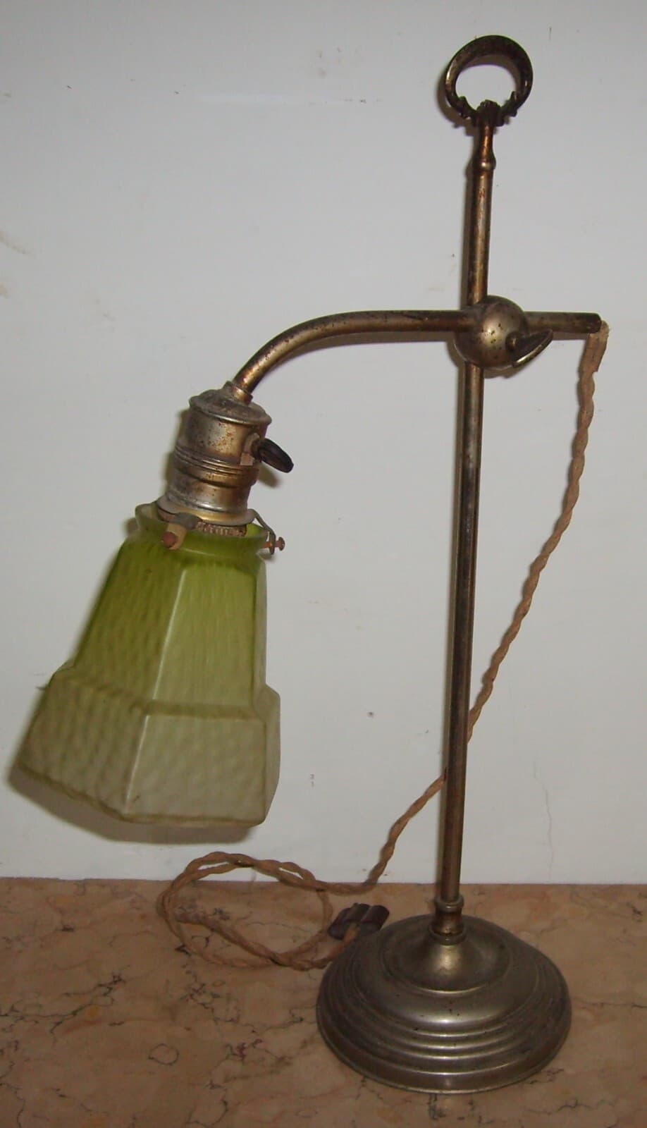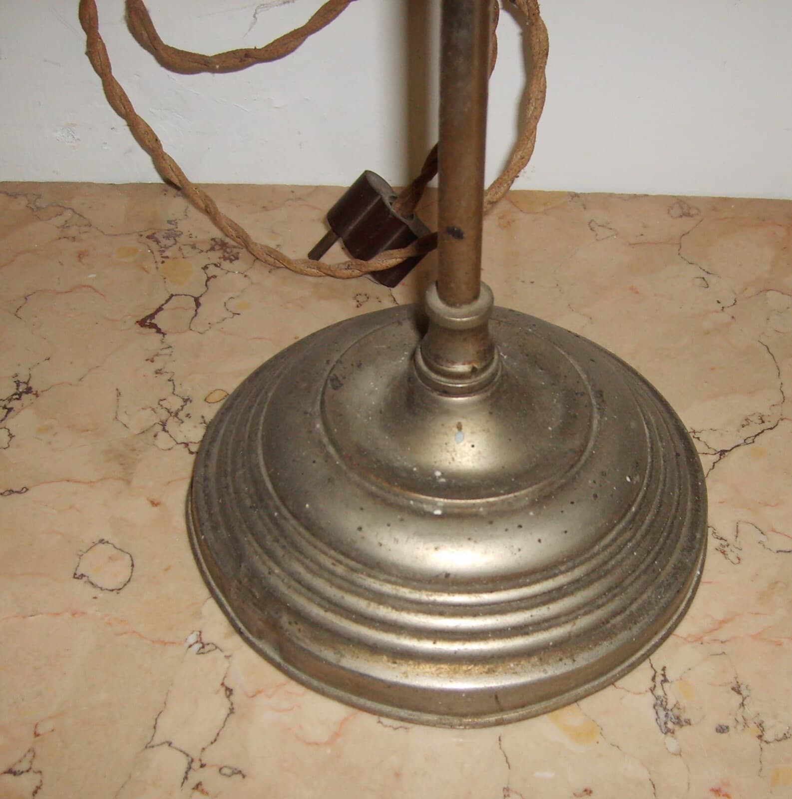 Antica Lampada Da Tavolo Liberty In Ottone Nichelato