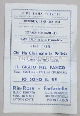 Teatro Broadway New York: Cine Roma Theatre Caimi, Baldi, Cipudduzza Emigrazione