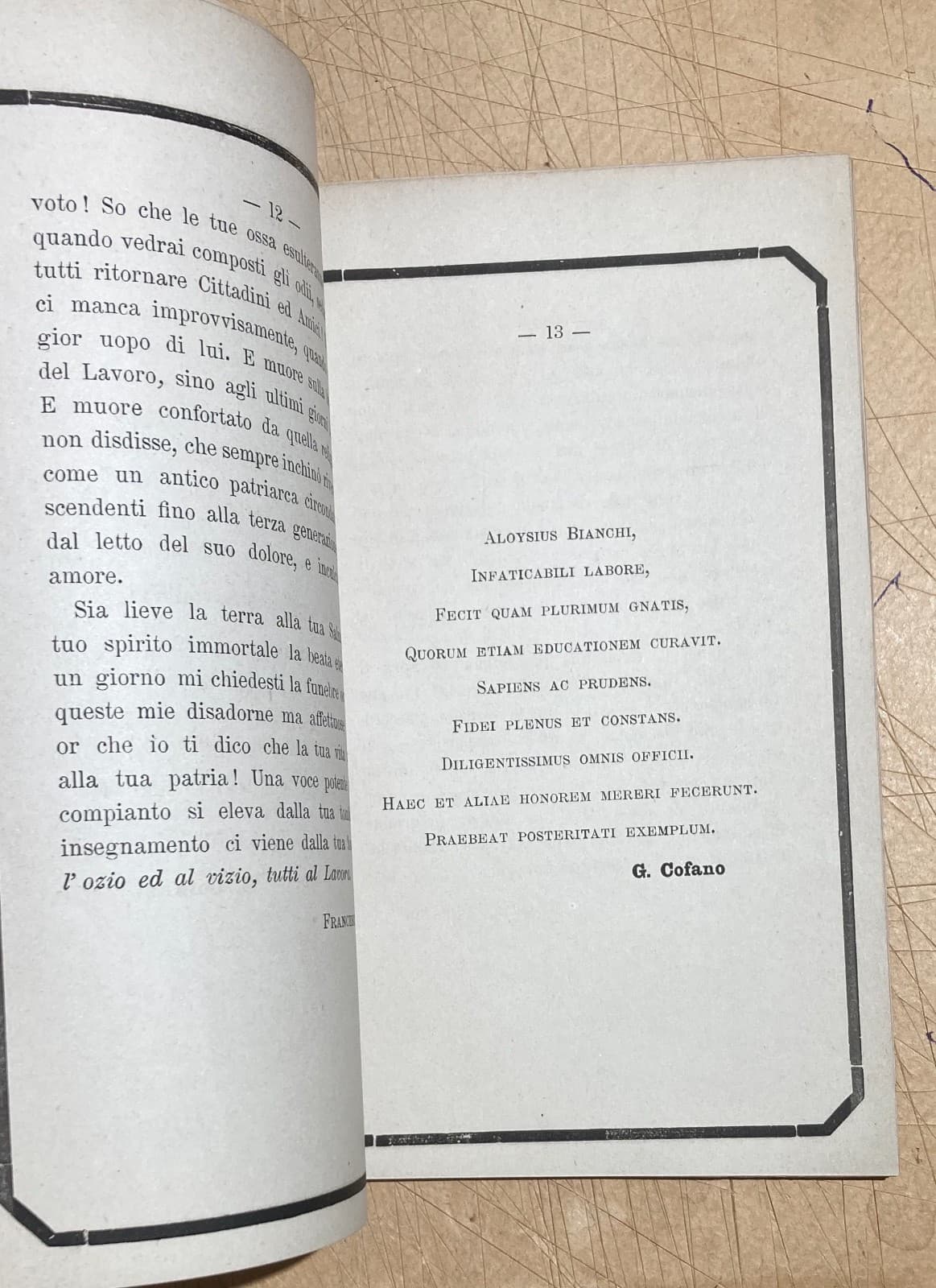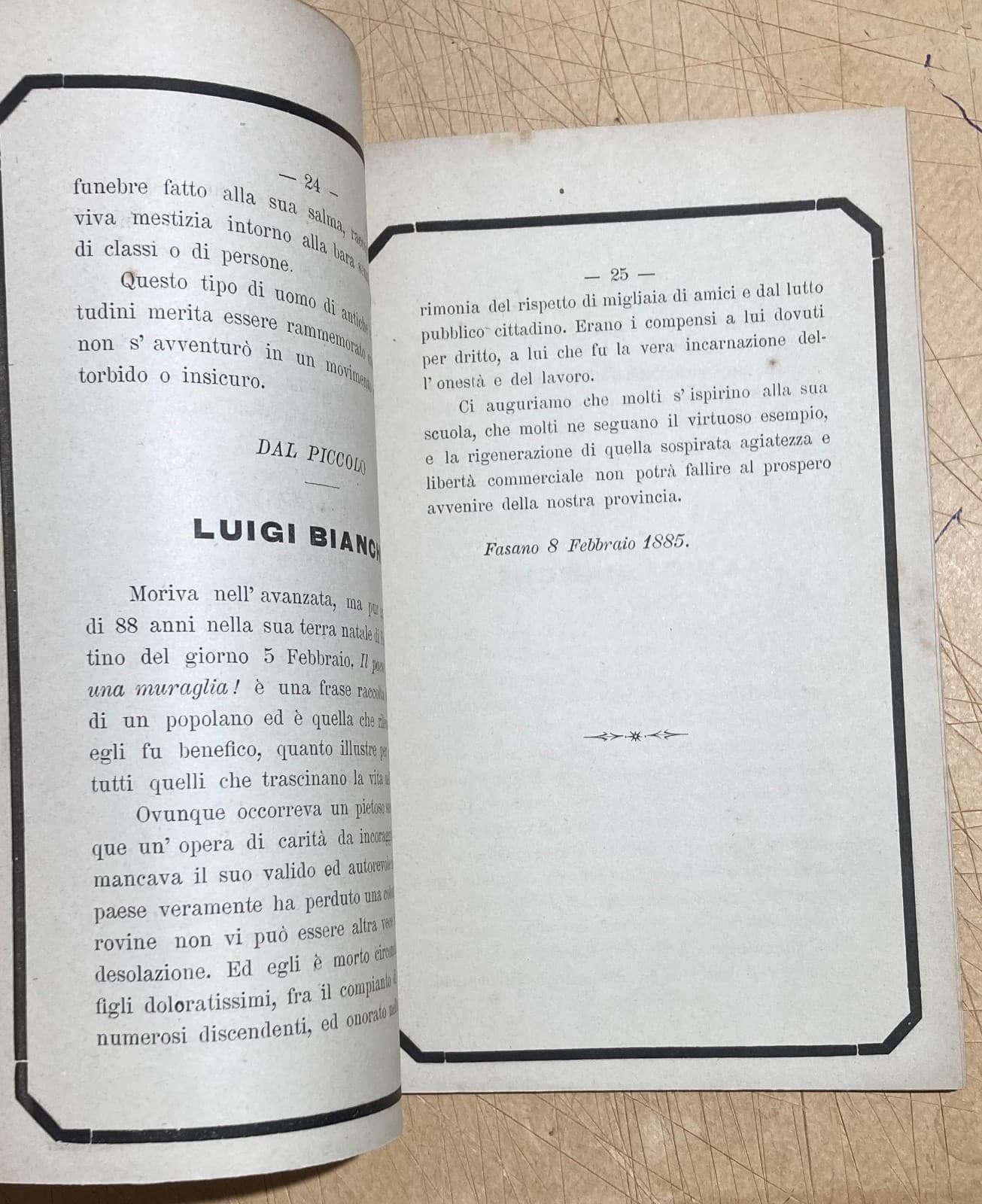 Puglia: Antico Necrologio Luigi E Damaso Bianchi Fasano Trisciuzzi Brandi 1885