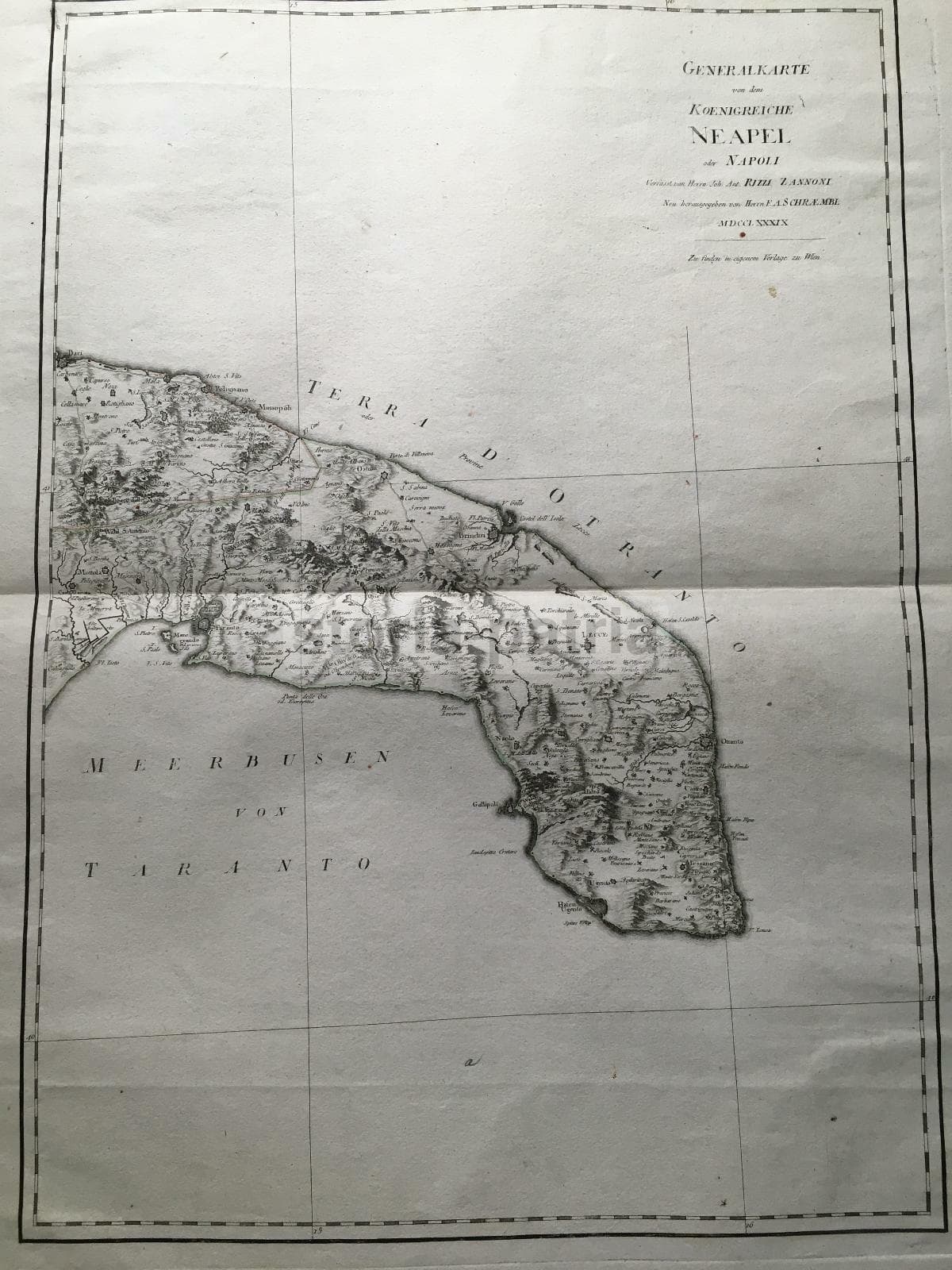 Puglia, Salento E Terra d'Otranto Mappa Di Rizzi Zannoni