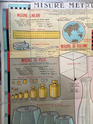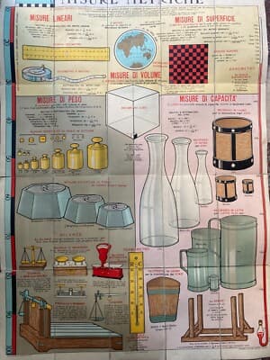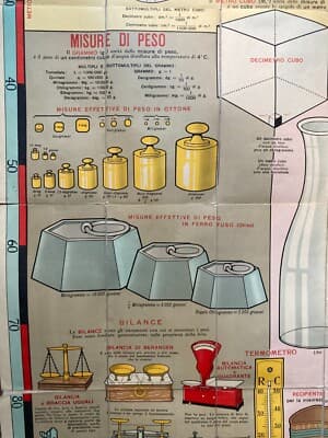 Scienze Metriche: Misure, Termometro, Bilance, Pesi, Capacità. Grande Stampa Antica