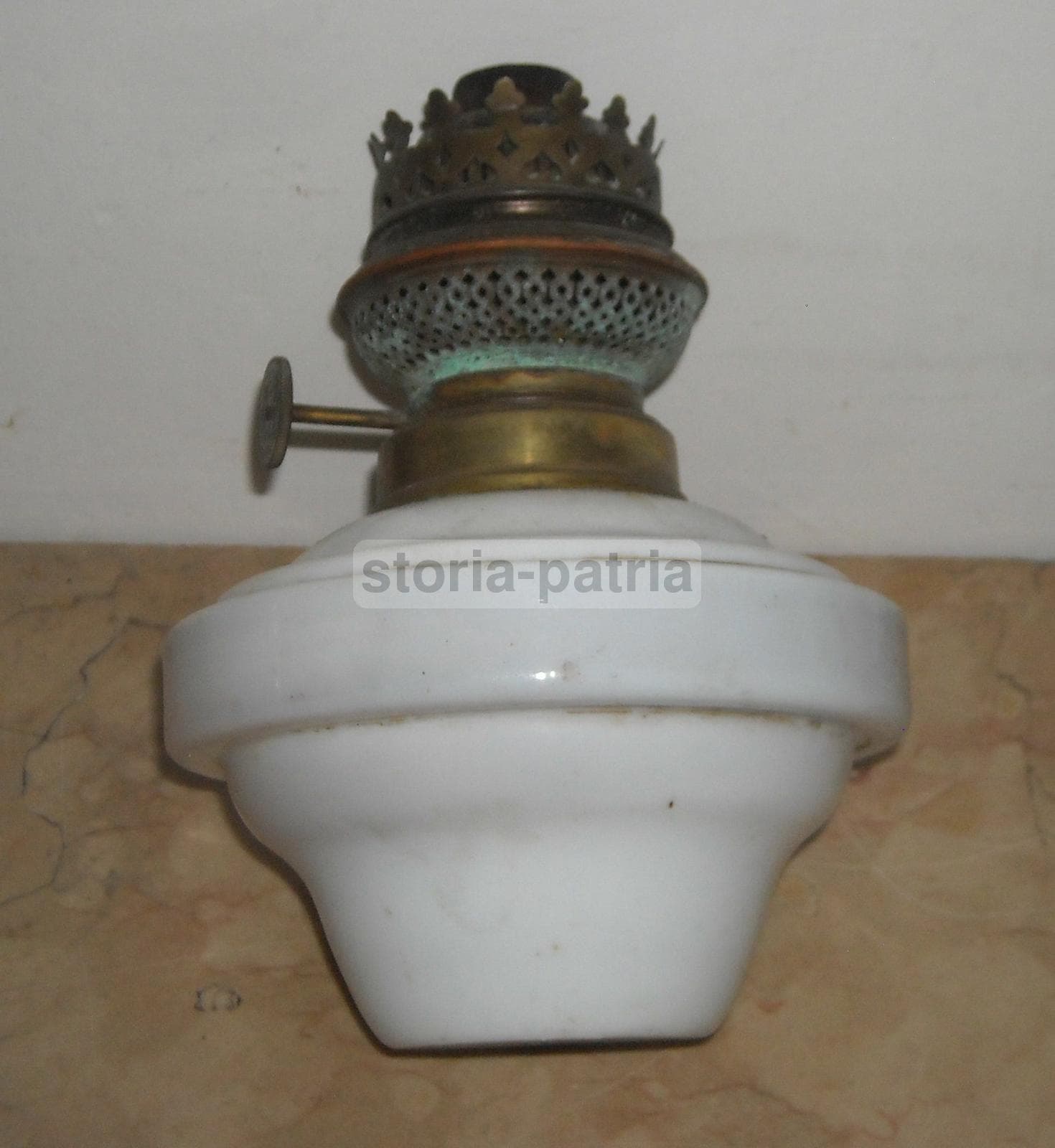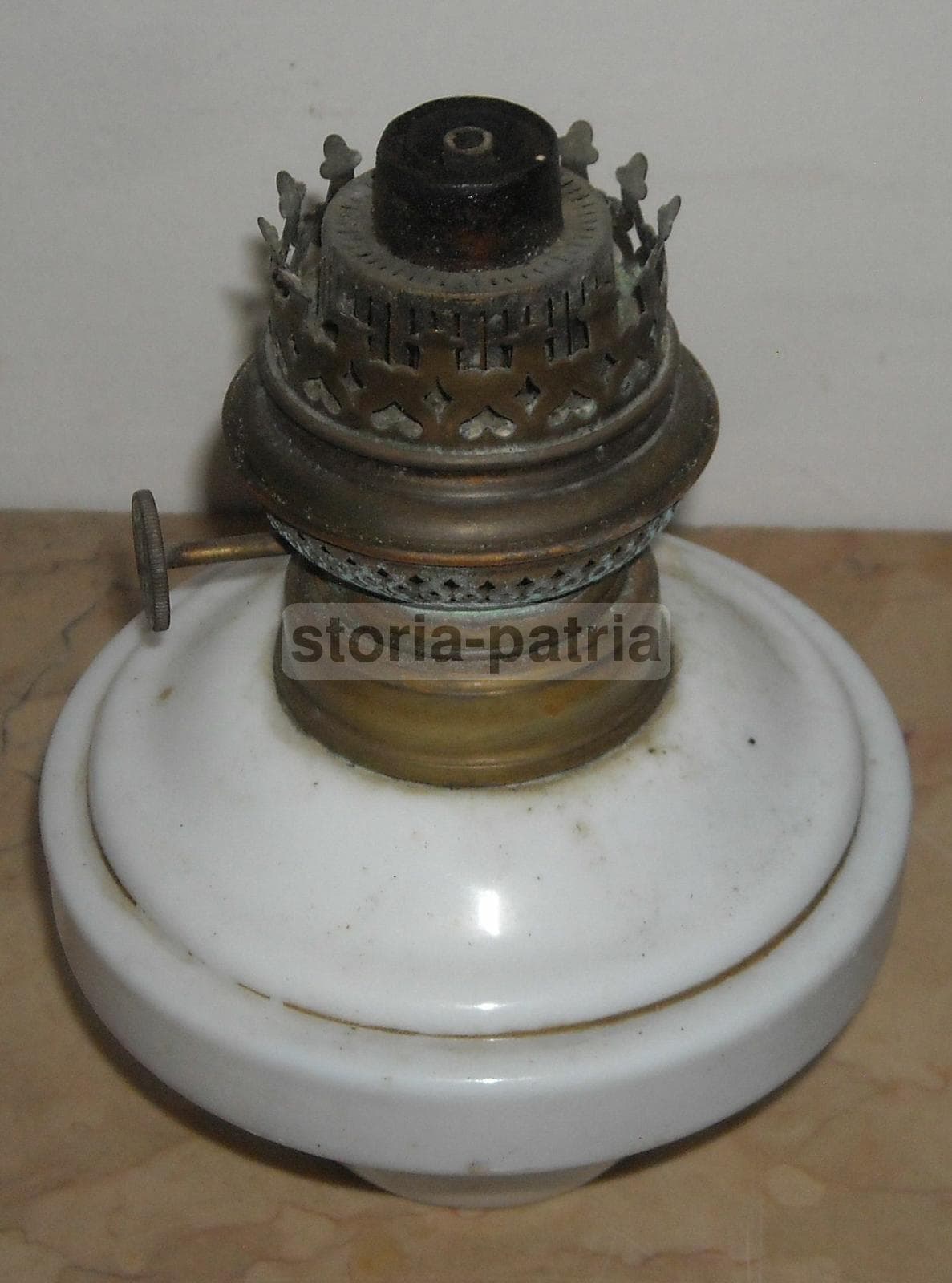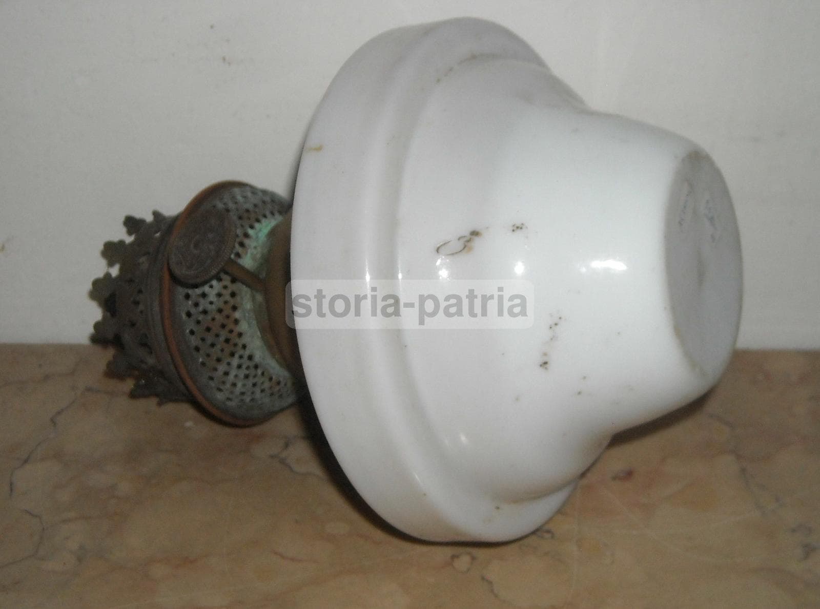 Lampada Antica A Petrolio In Vetro Opaline Bianco Kosmos Vulkan, Epoca Liberty