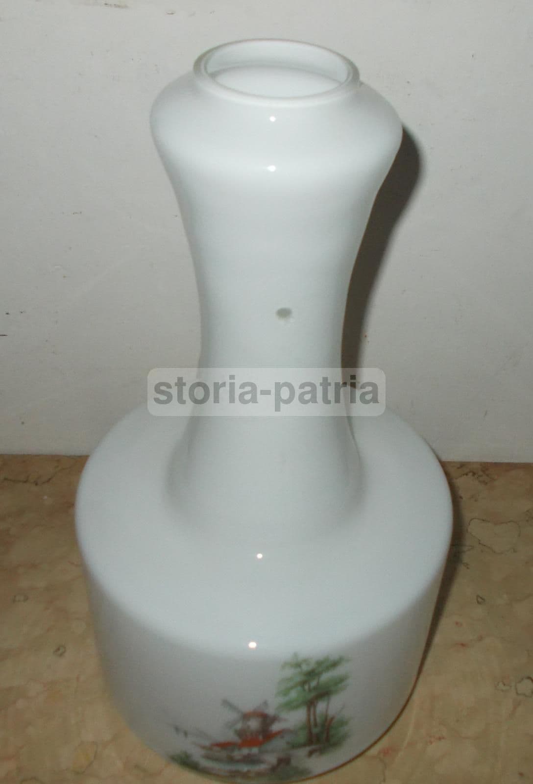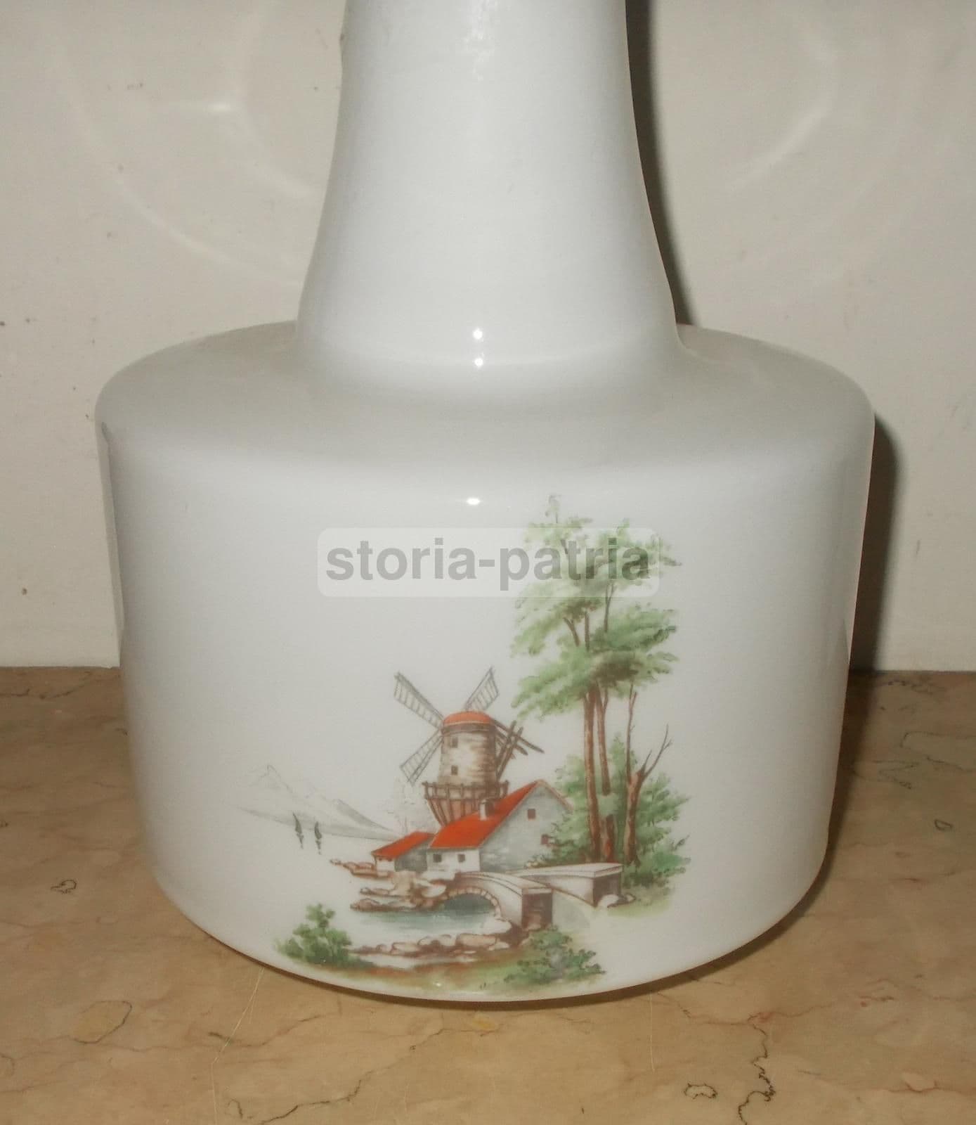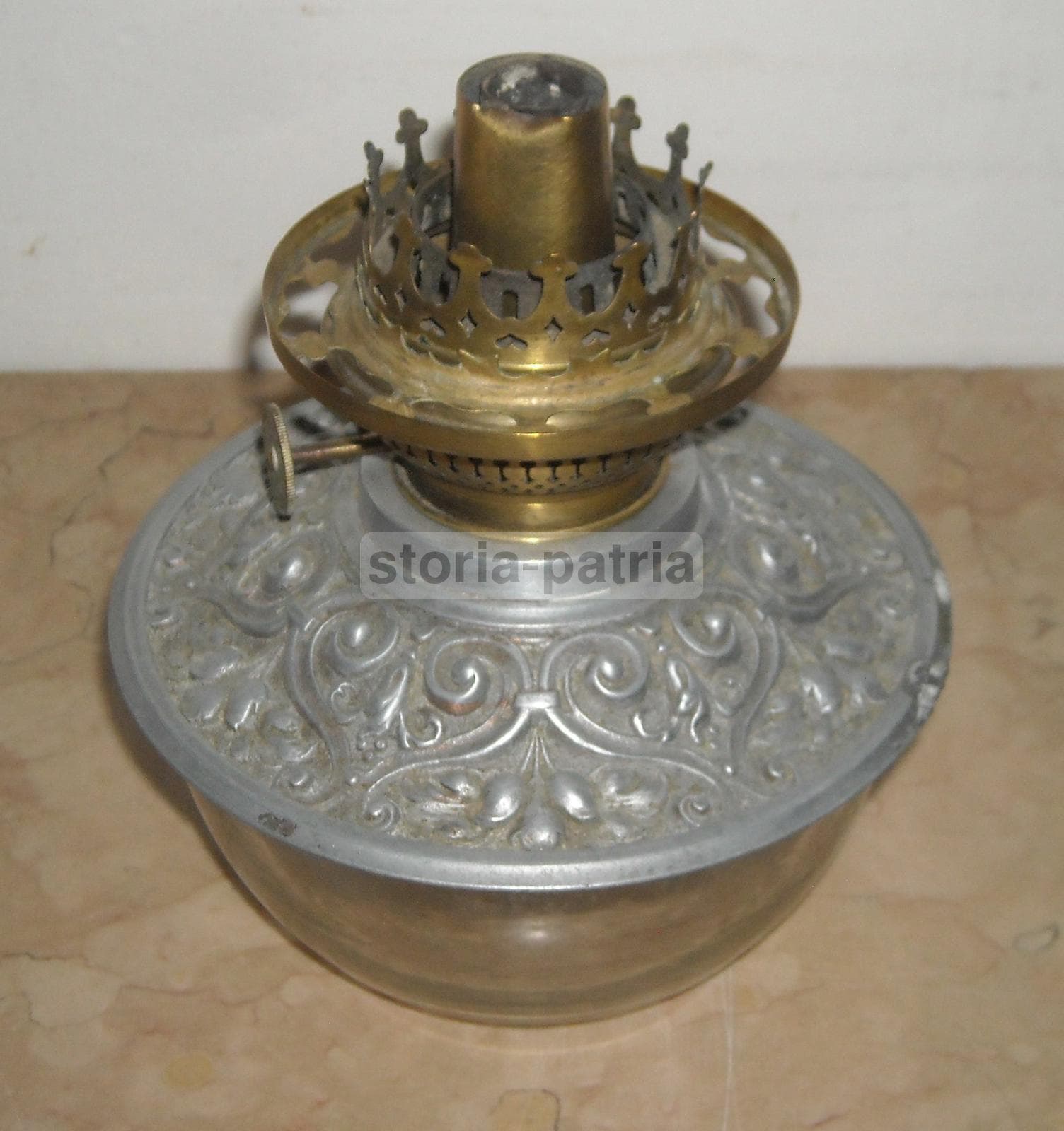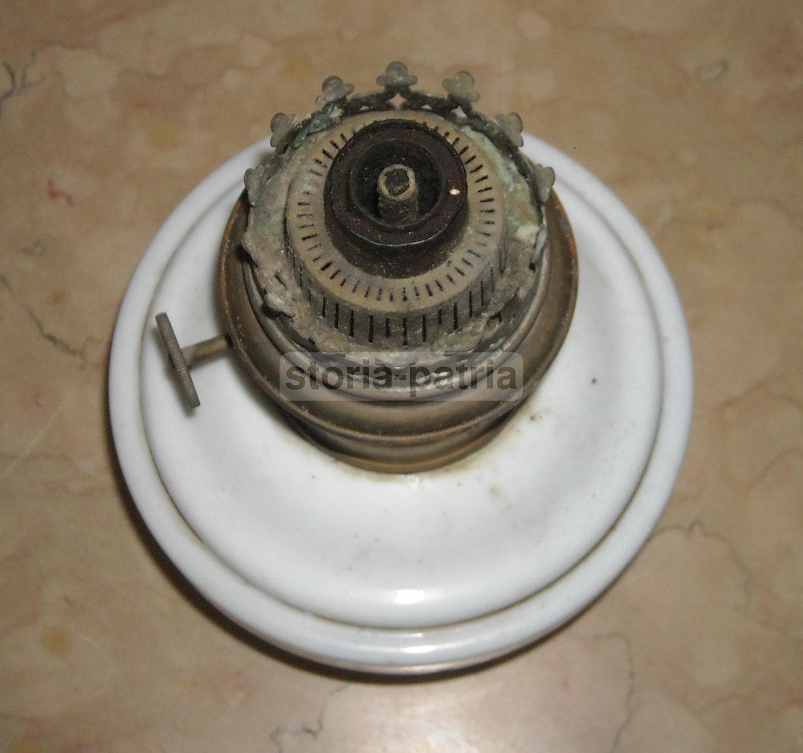Lampada Antica A Petrolio In Vetro Opaline Bianco Kosmos Vulkan, Epoca Liberty