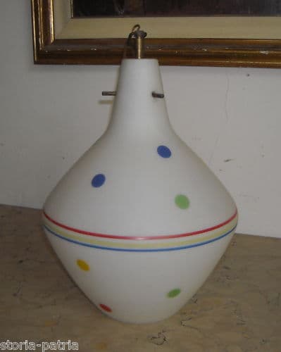 Lampada Vintage In Vetro Opalescente Anni '50 '60 Con Decori Colorati
