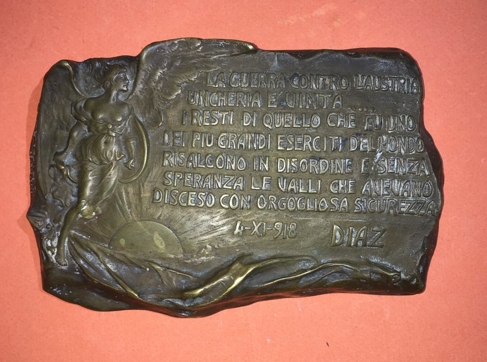 Militaria: Grande Guerra, Diaz, Vittoria Alata, 1918, Scultura Laganà, Napoli