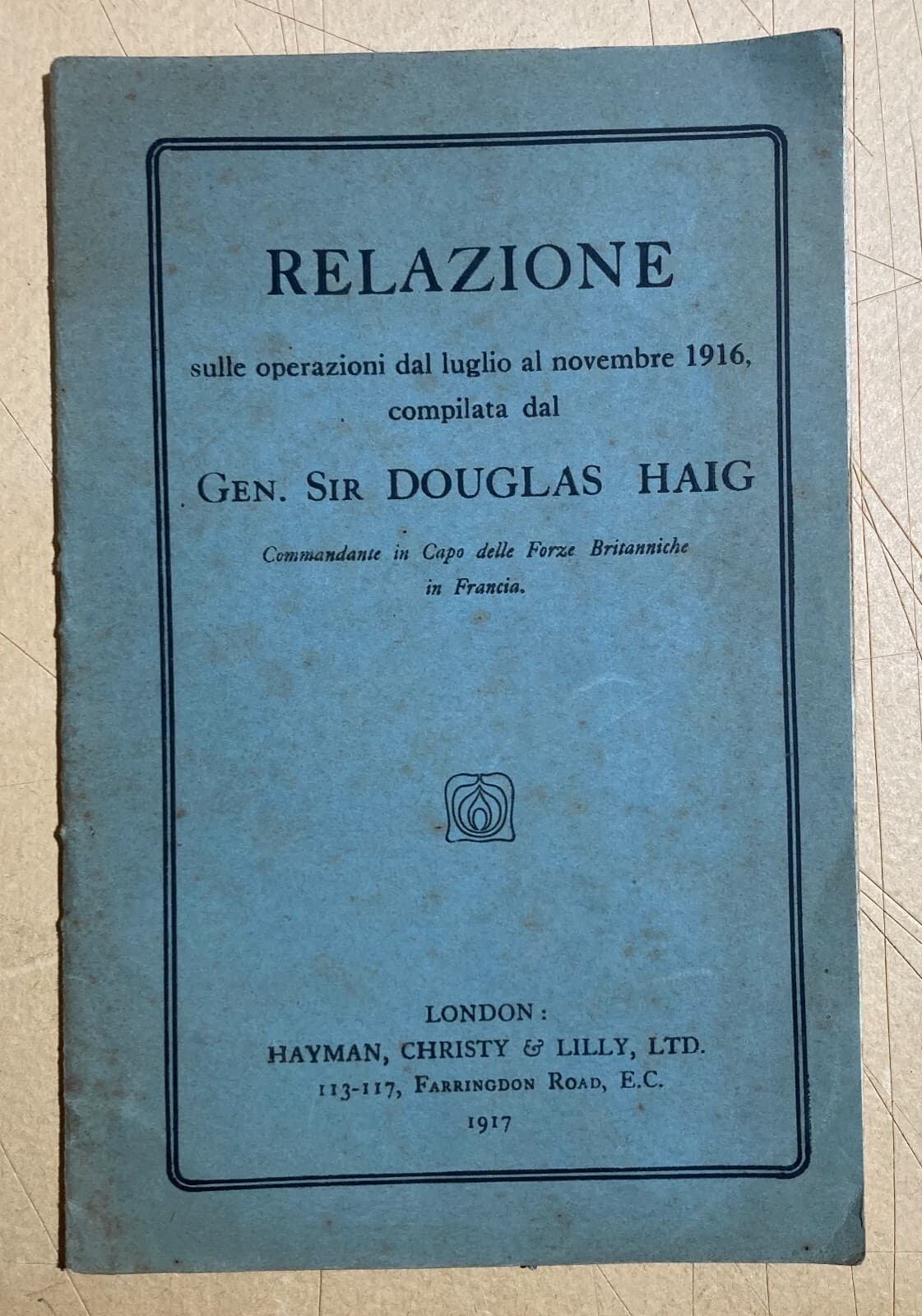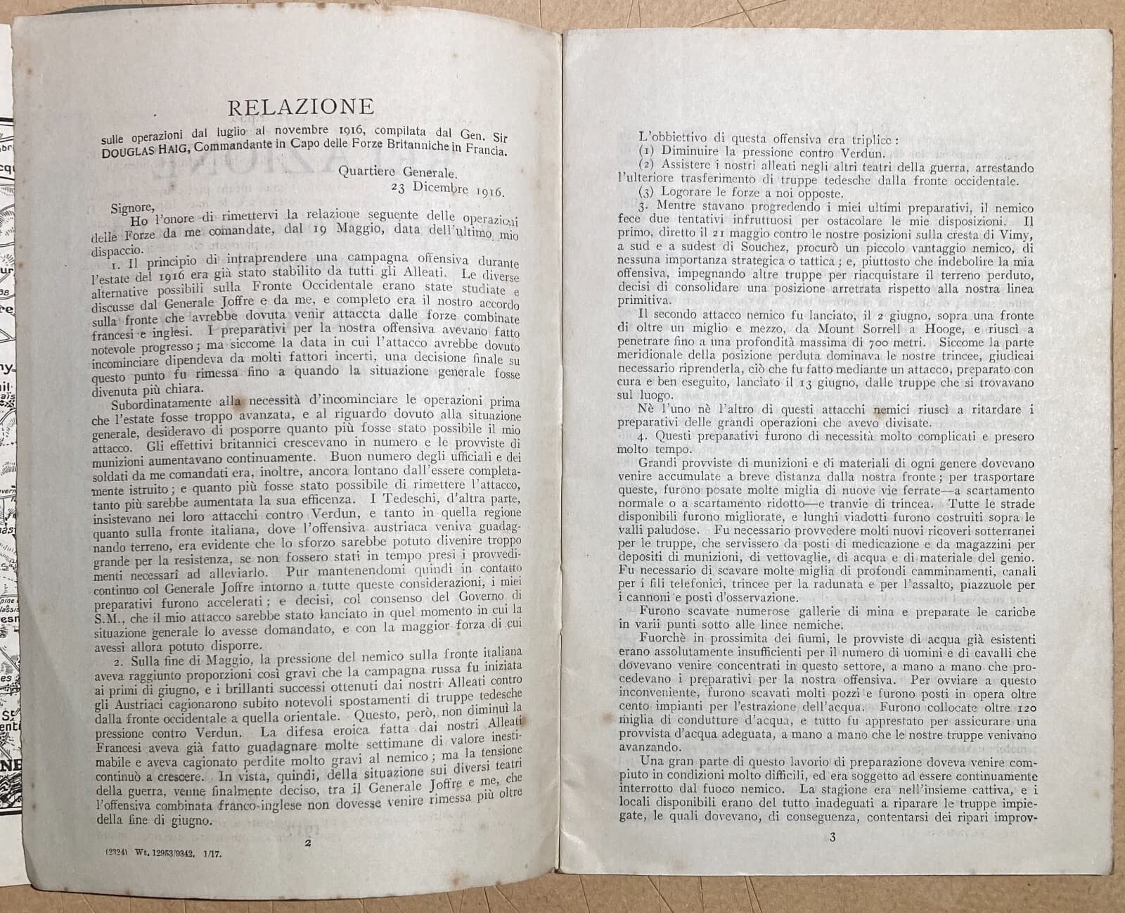 Douglas Haig: Relazione Sulle Operazioni Militari In Francia, 1917