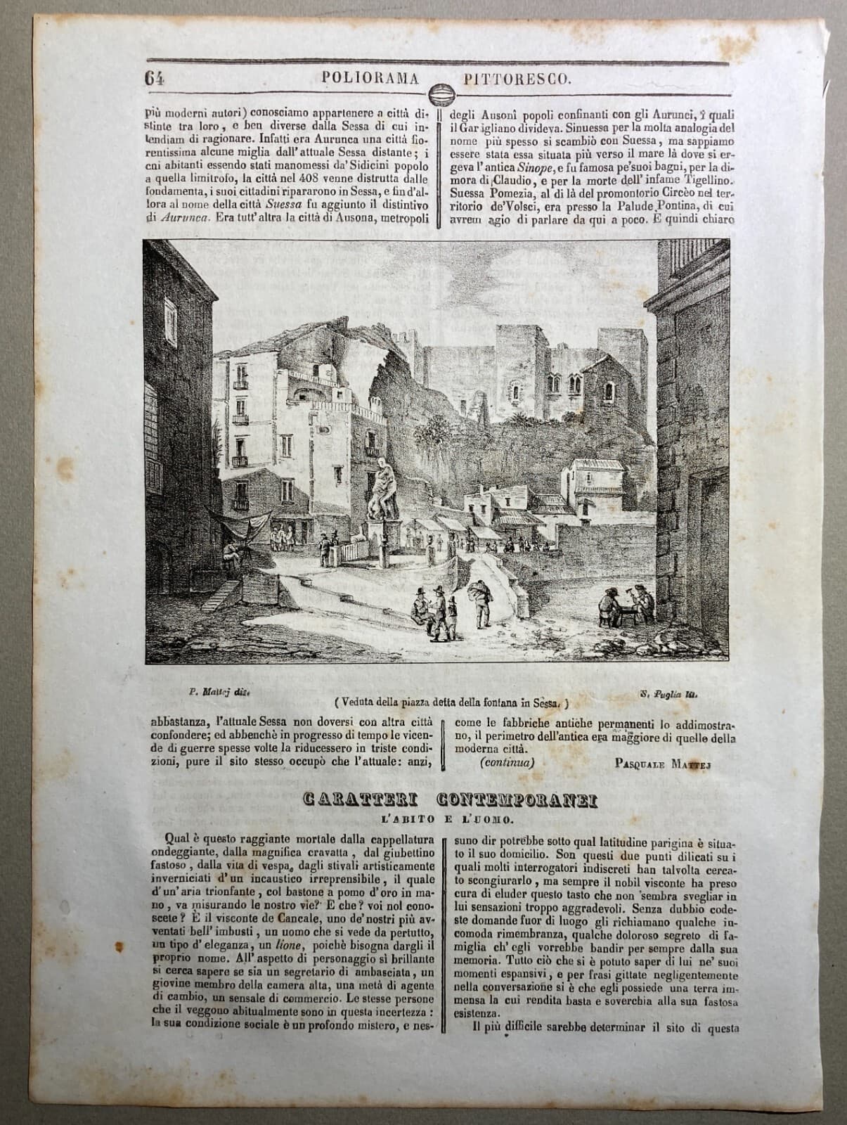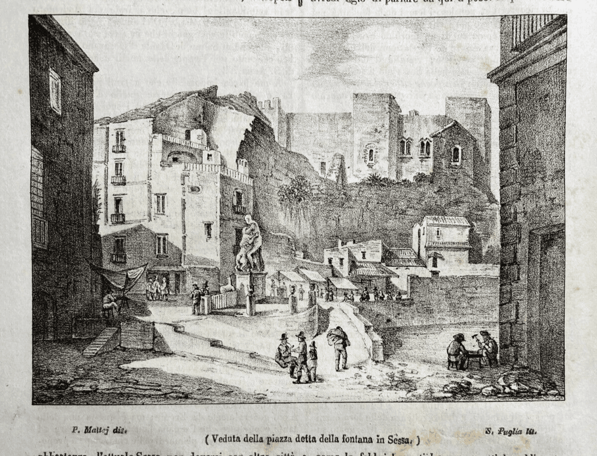 Sessa Aurunca: Antica Veduta Litografica Di Piazza Della Fontana