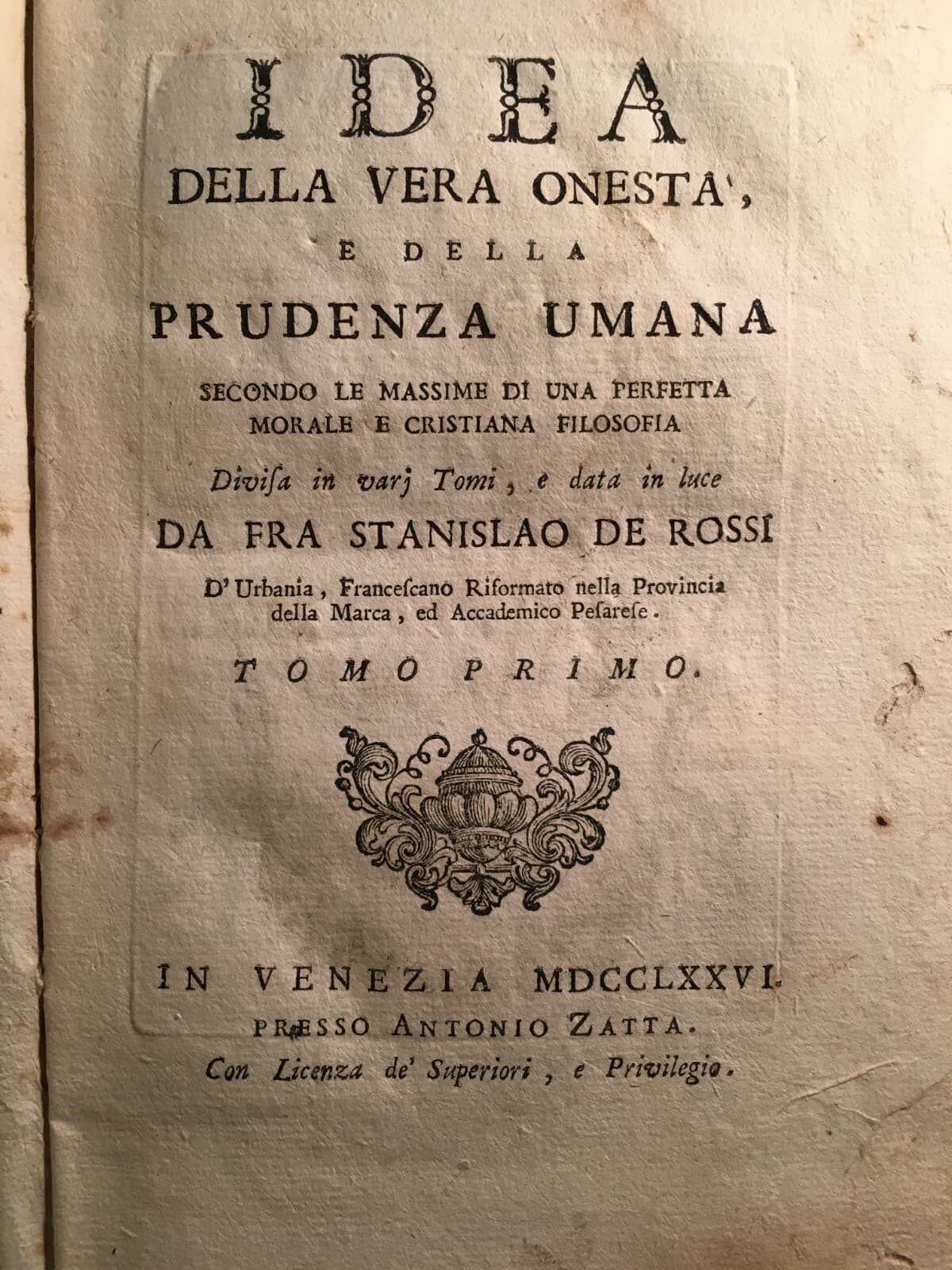 Marche, Pesaro: Idea Della Vera Onestà E Della Prudenza Umana, De Rossi, Araldica, Settecento