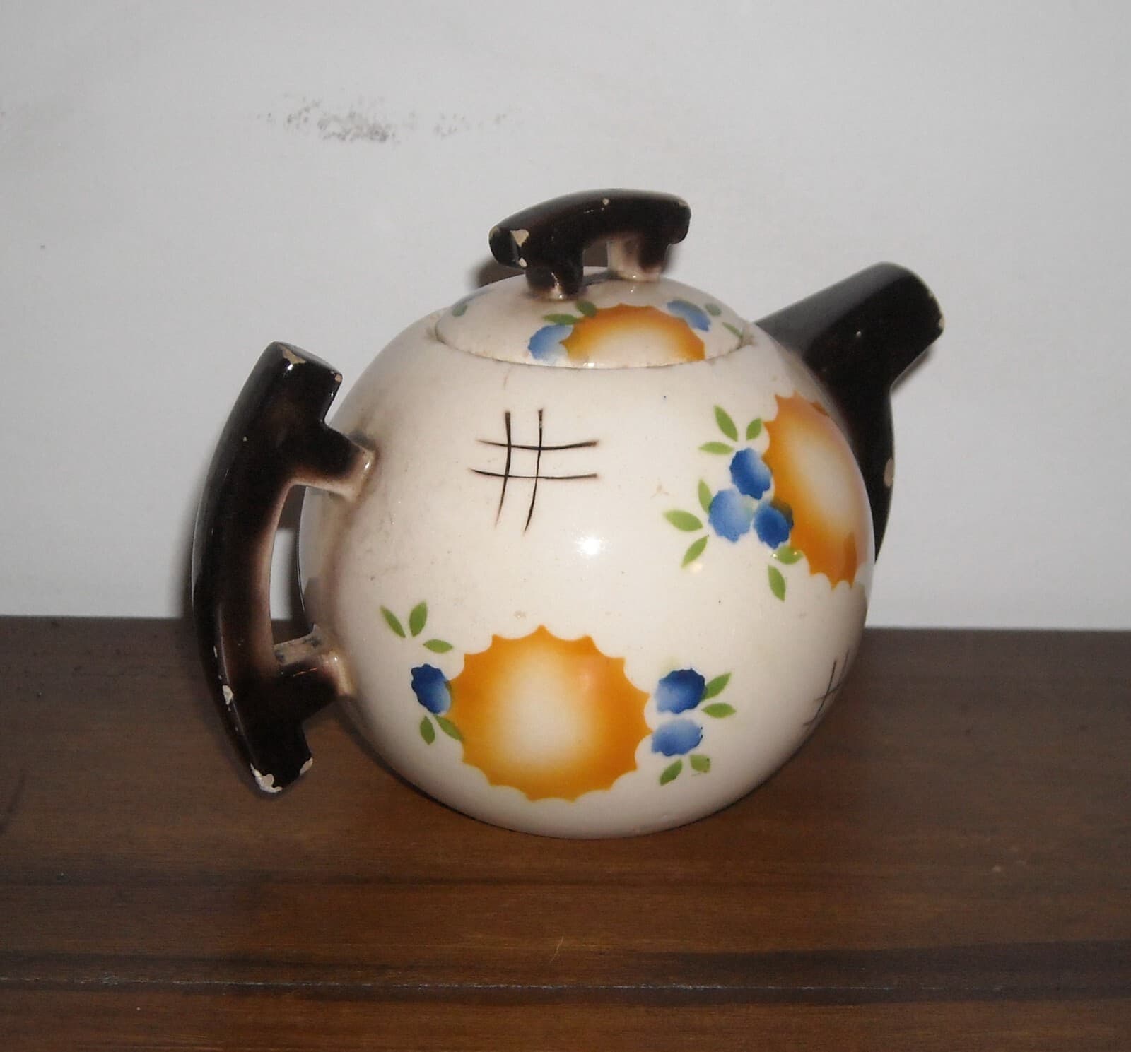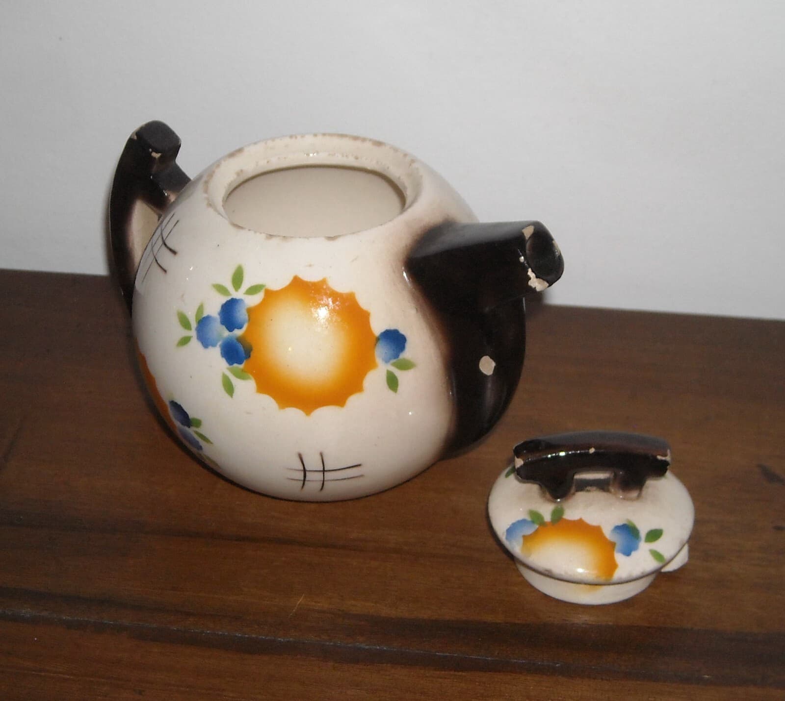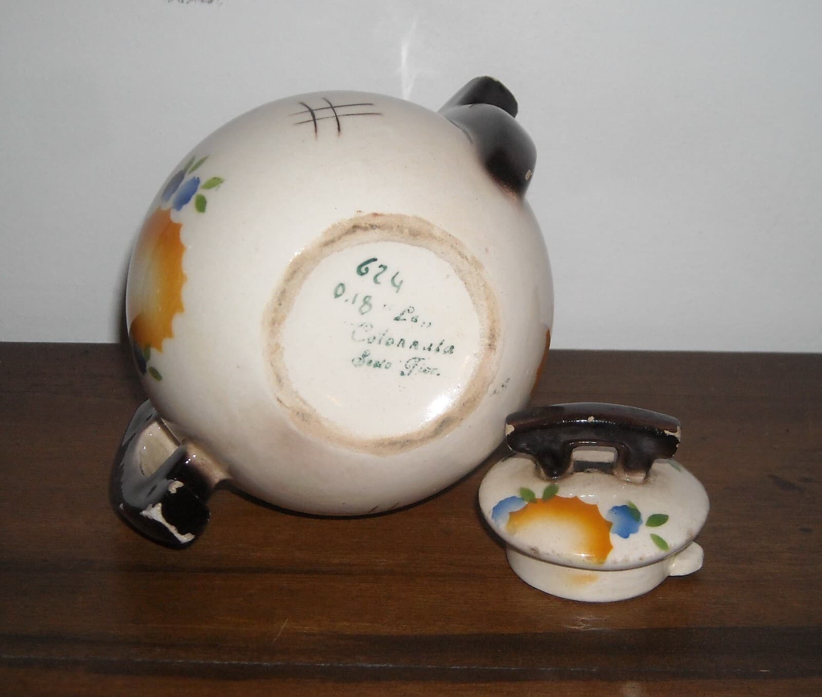 Antica Ceramica Con Decori Artistici E Mascheroni. Teiera O Caffettiera Da Collezione
