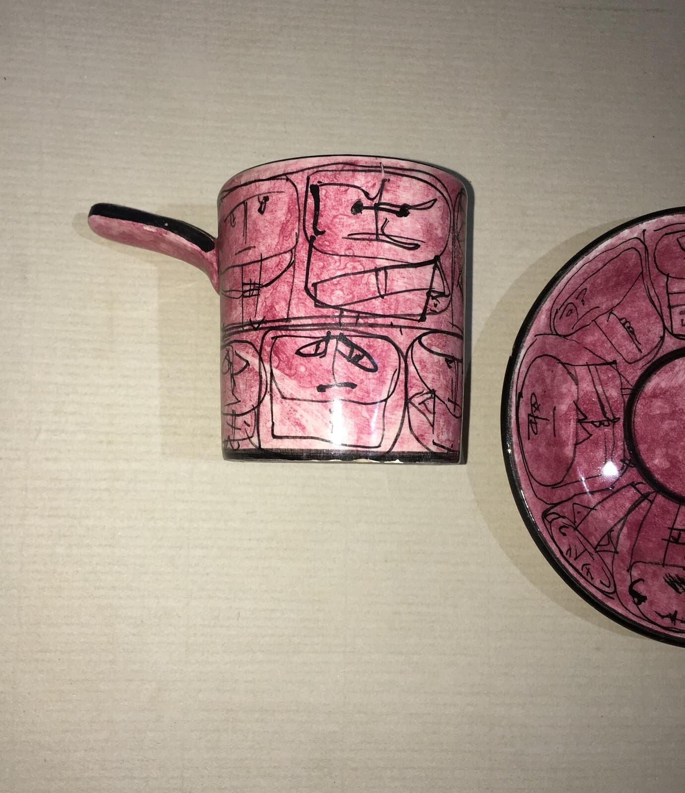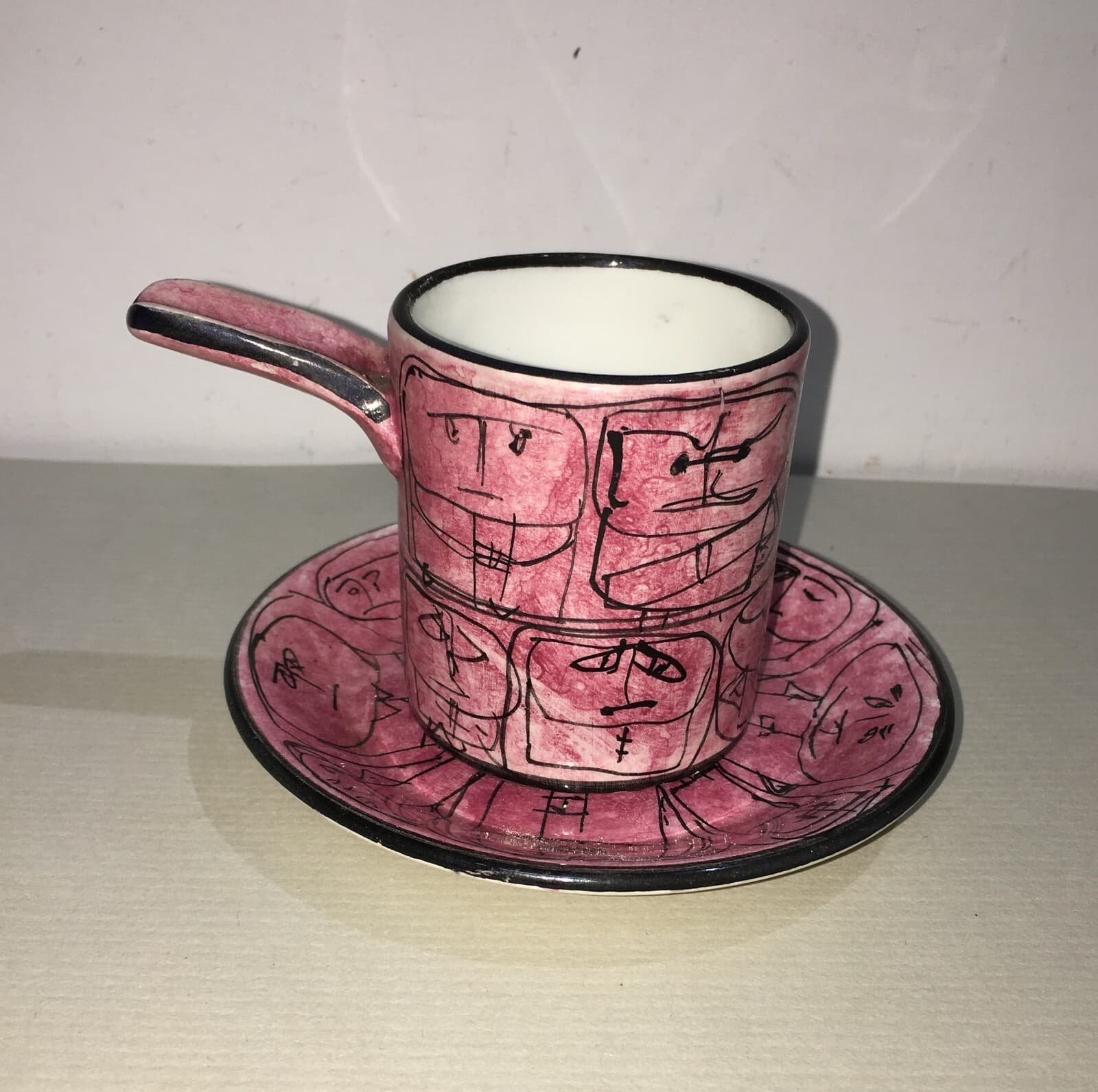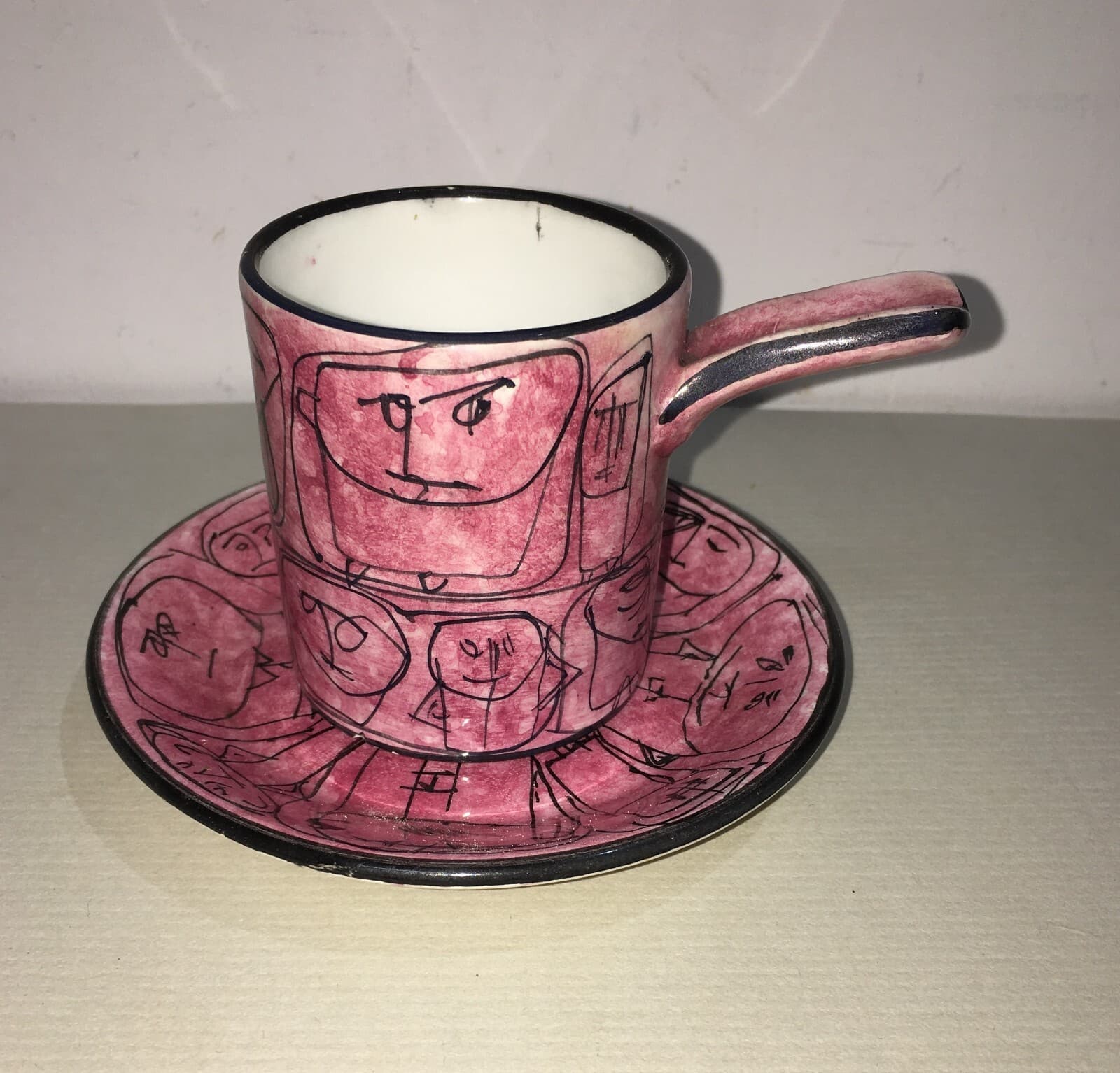 Arte Ceramica: Tazzina Con Piattino, Decori Umoristici, Chiusi, Bai, Metà '900