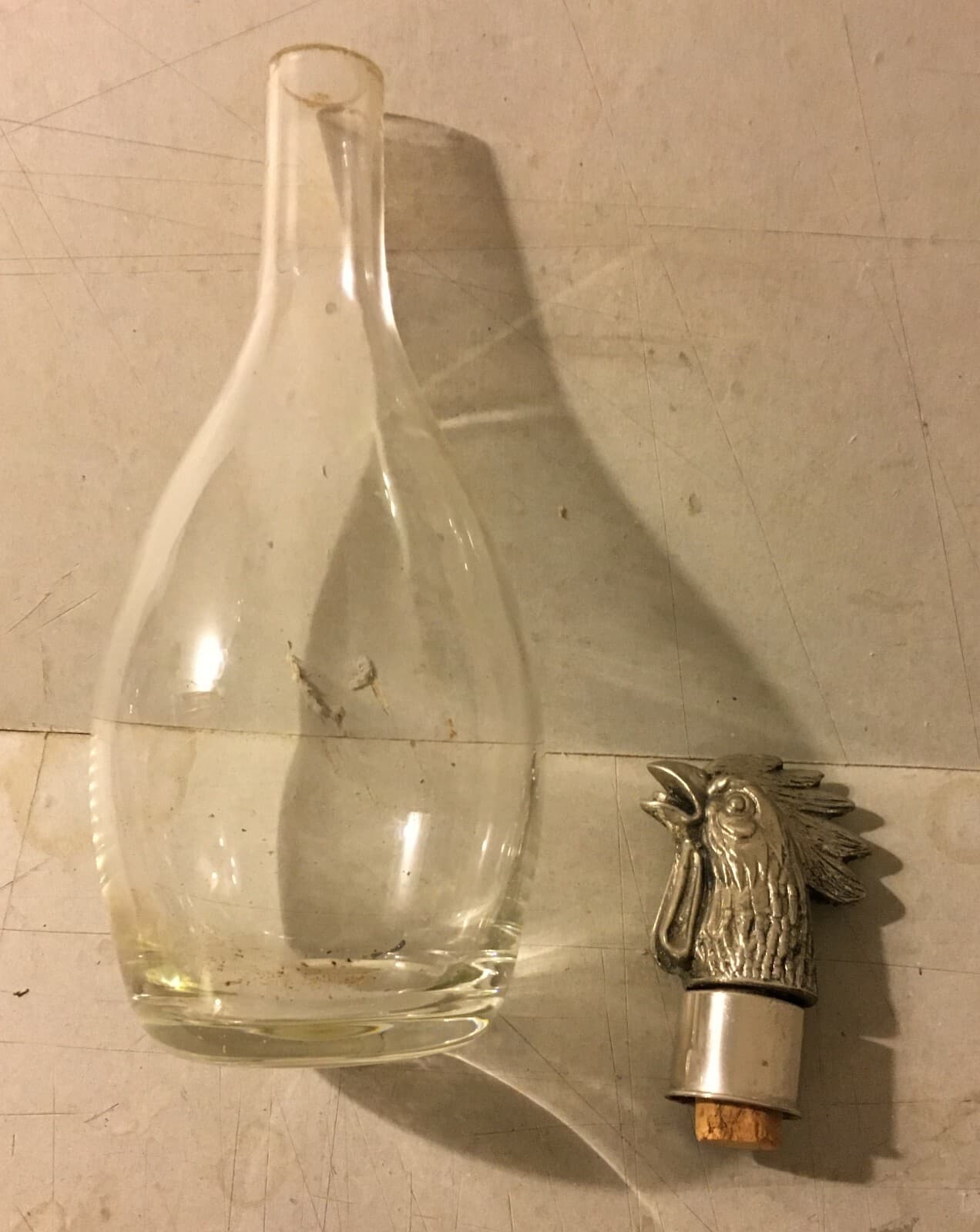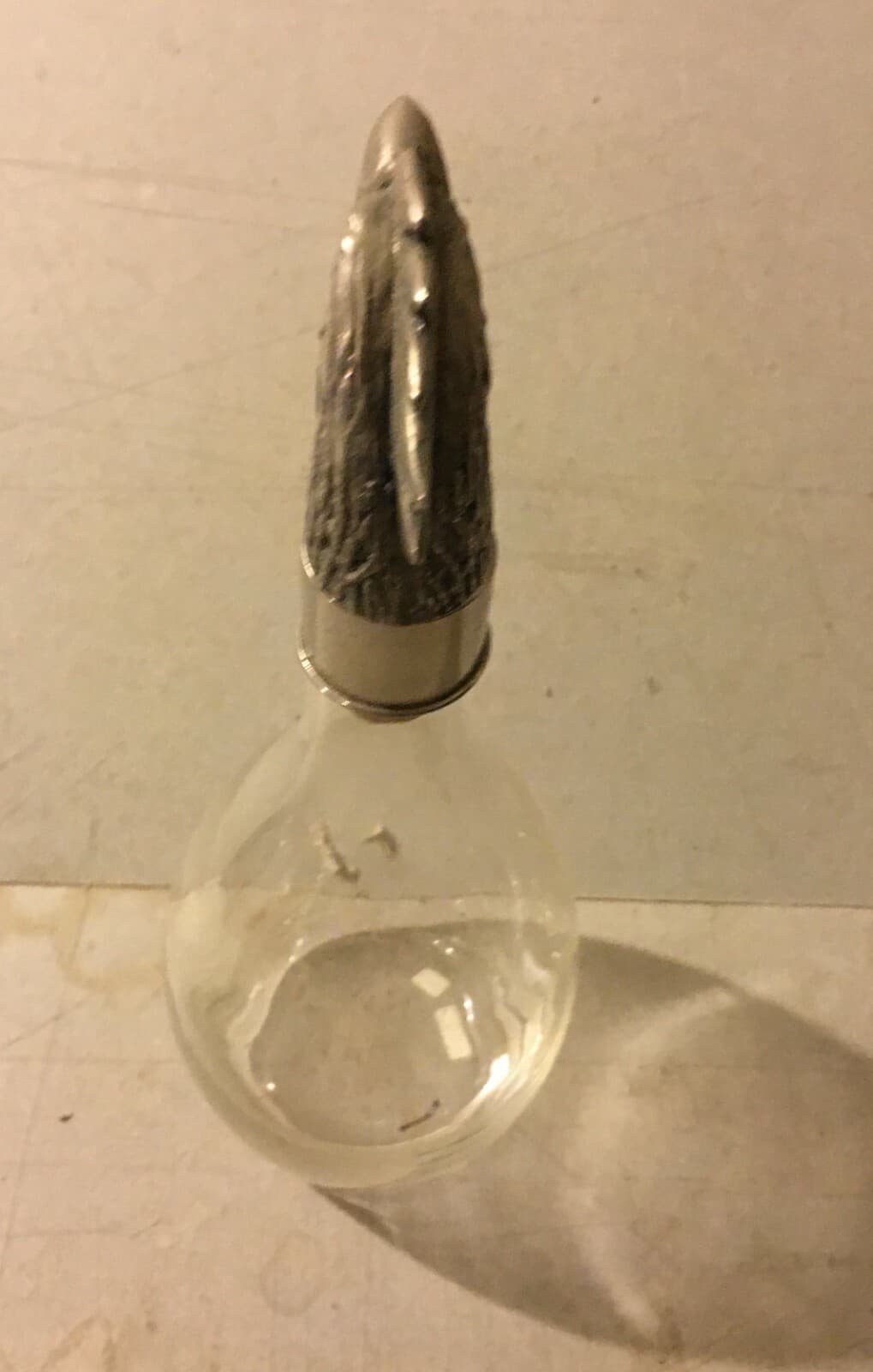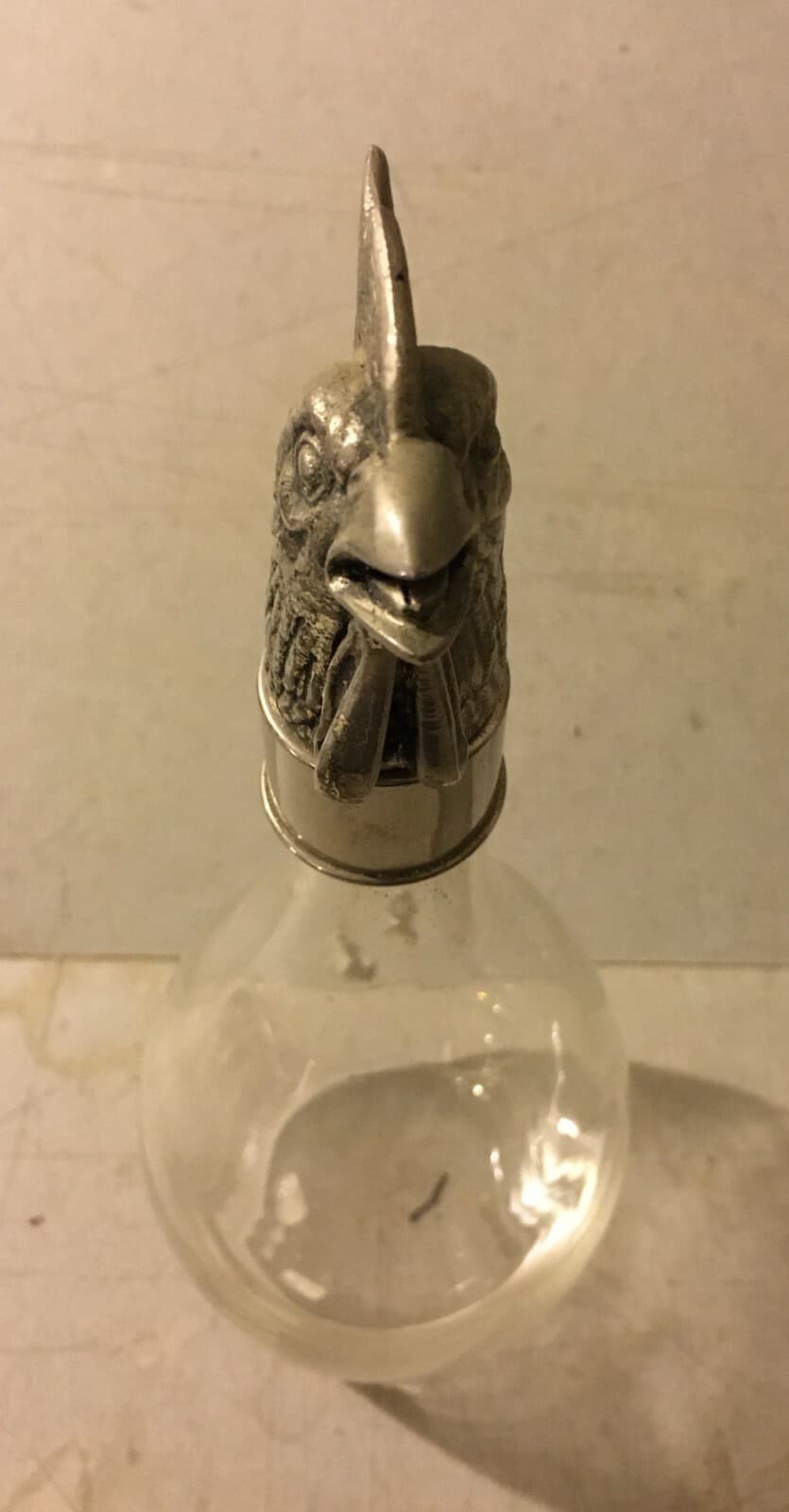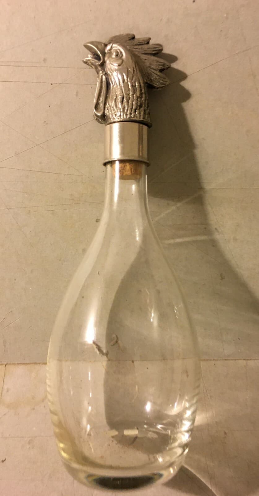Vetri Da Collezione: Bottiglia Decorativa Con Tappo In Metallo A Testa Di Gallo (XX Secolo)