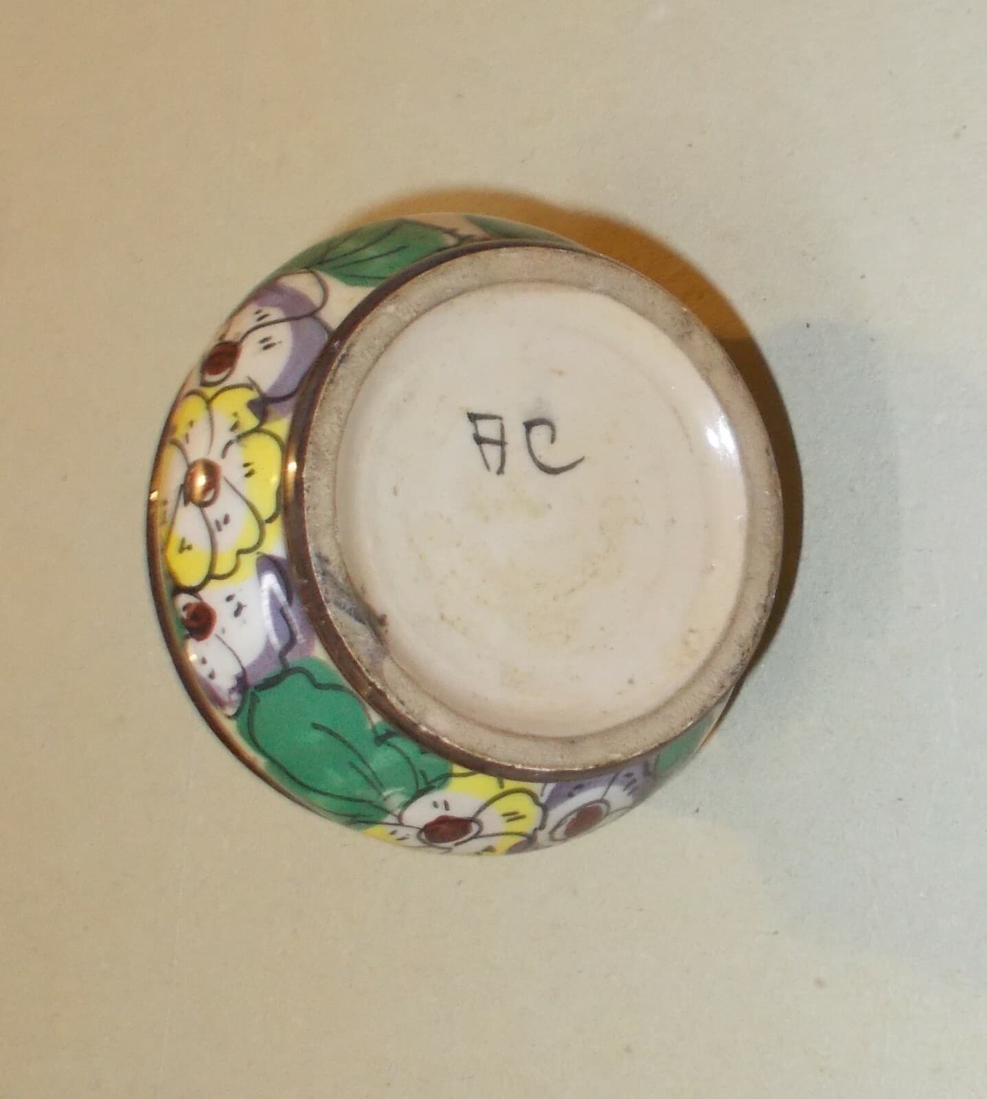 Ceramica d'Epoca Con Decoro Floreale Policromo Siglata AC