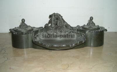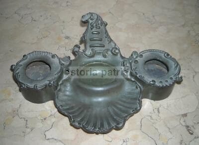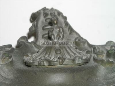 Calamaio Antico In Bronzo Con Scultura Di Scimmia