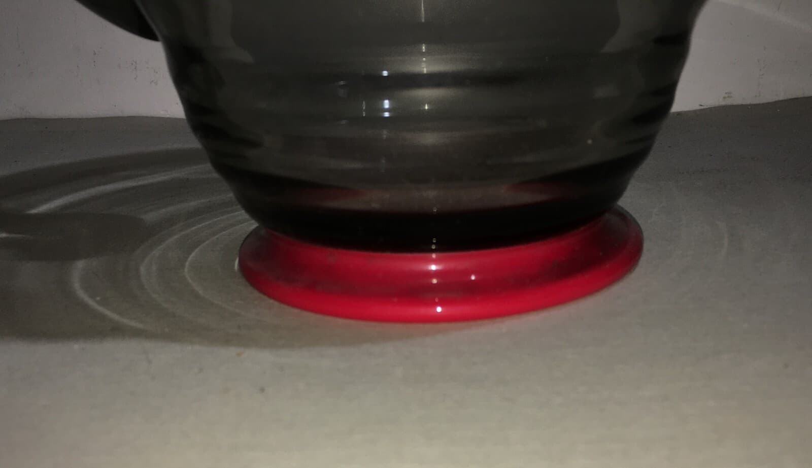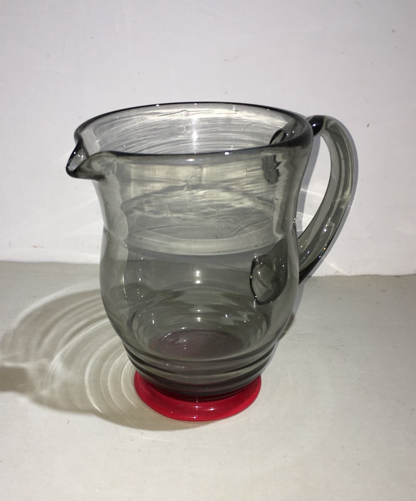Modernariato: Caraffa Decorativa In Vetro Fumè E Base Rossa