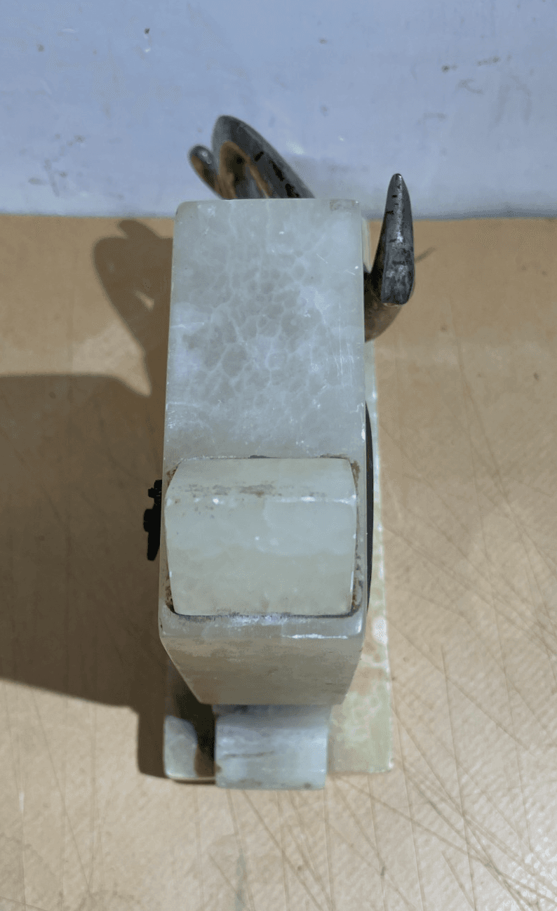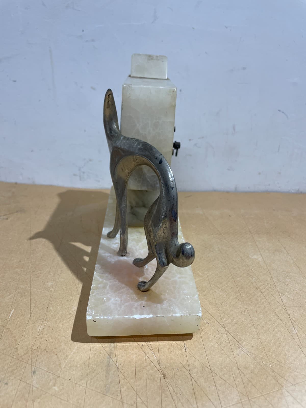 Orologio Da Tavolo Art Déco Con Figura Di Levriero In Alabastro