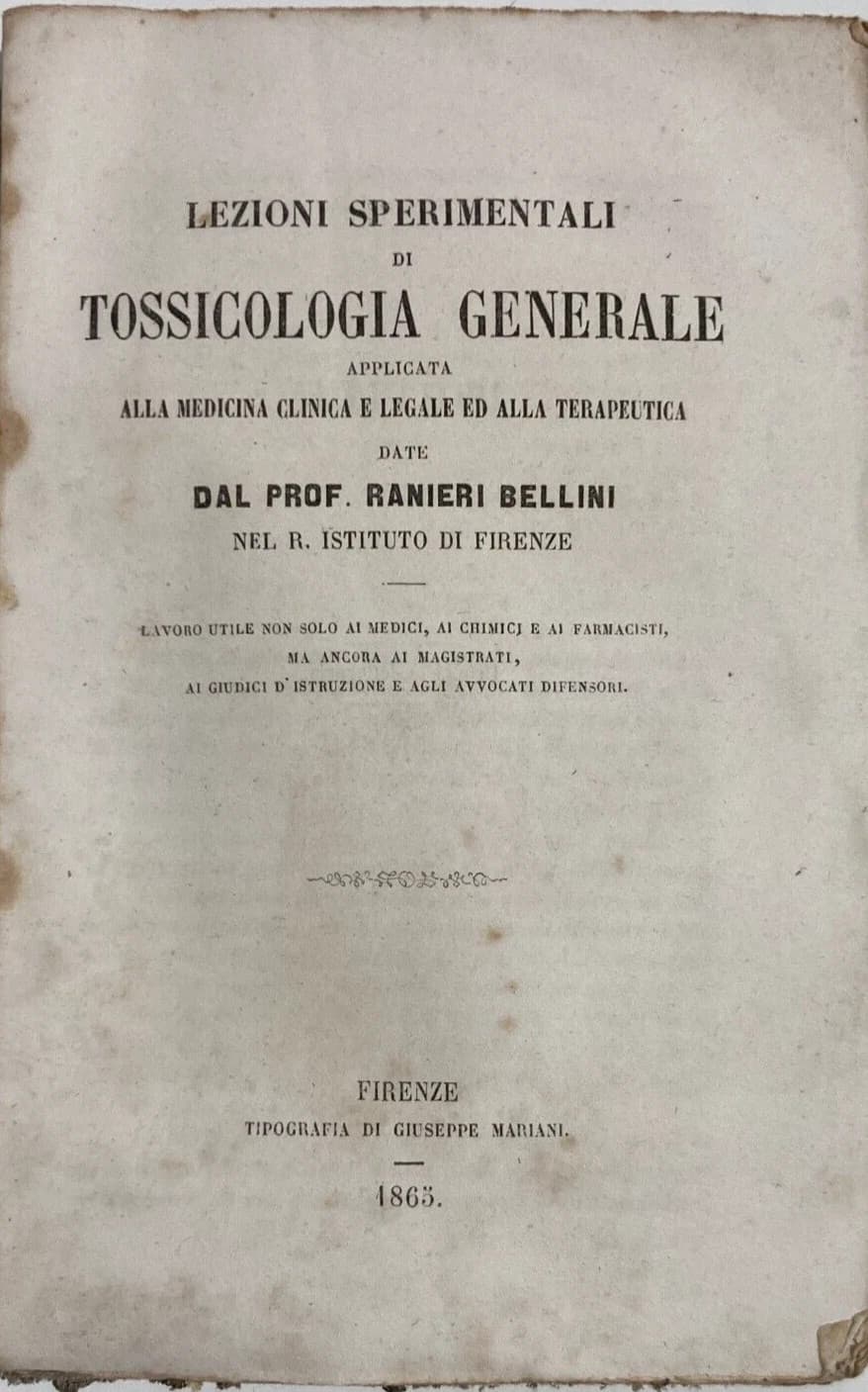 Medicina, Farmacia E Tossicologia. Ranieri Bellini, 1865