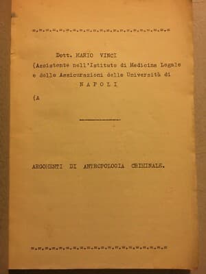 Mario Vinci, Argomenti Di Antropologia Criminale (Napoli, Anni '30)