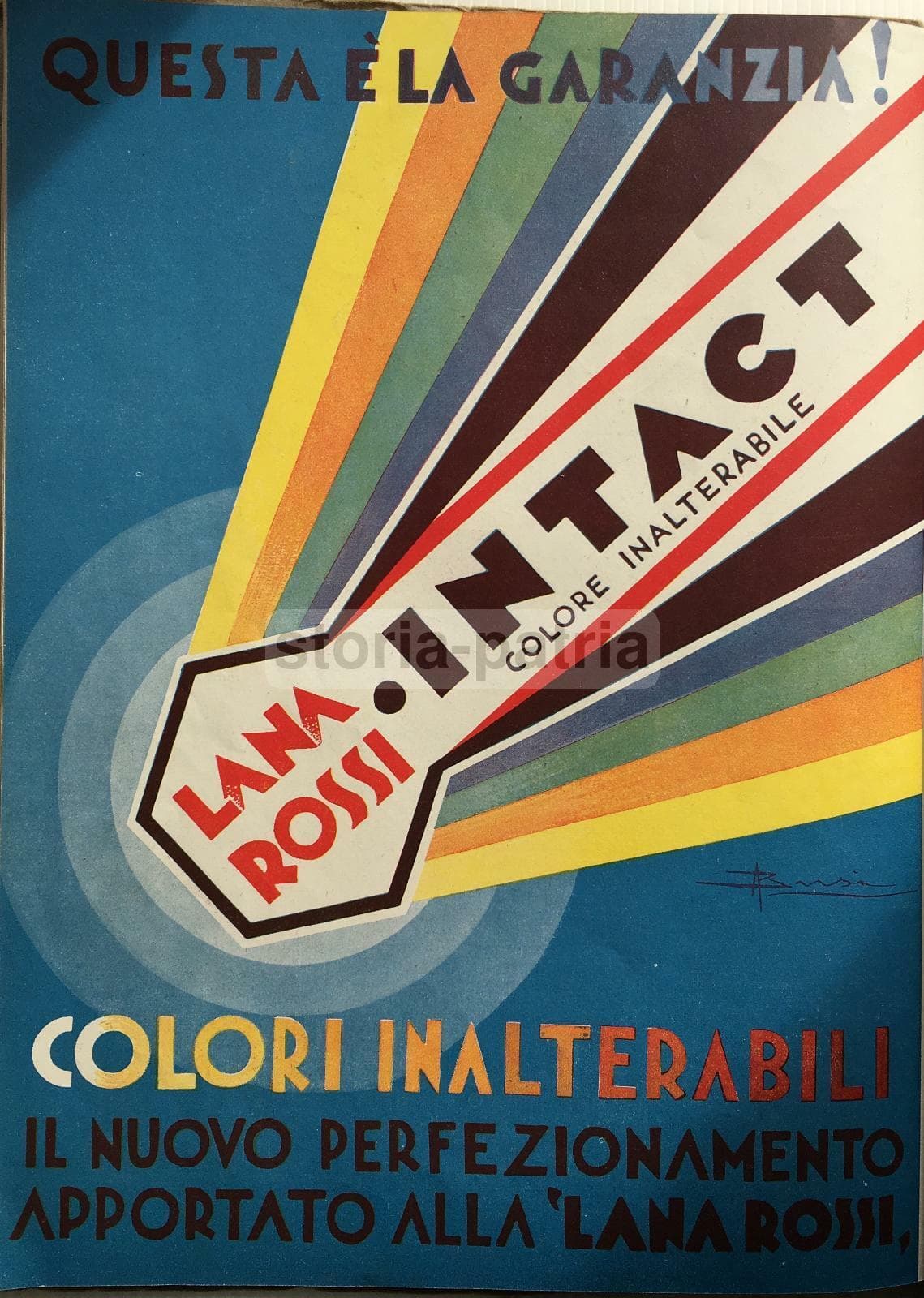 Lana Rossi Intact: Stampa Pubblicitaria Con Illustrazione Futurista Di Busi (1932)
