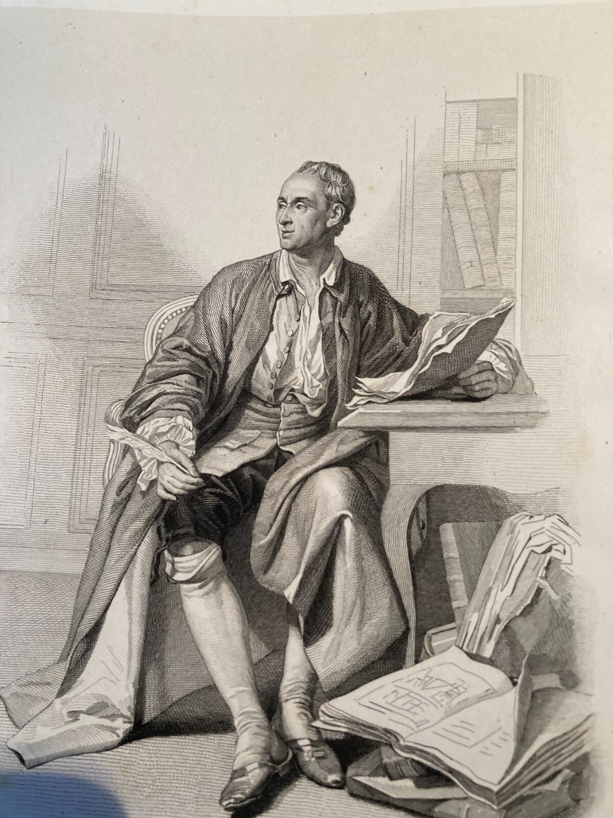 Jean Baptiste d'Alembert: Ritratto A Figura Intera. Incisione Originale Della Metà Dell'Ottocento
