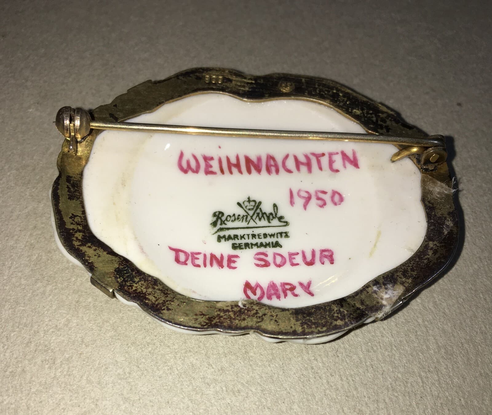 Spilla In Porcellana Rosenthal Con Decoro Floreale Policromo