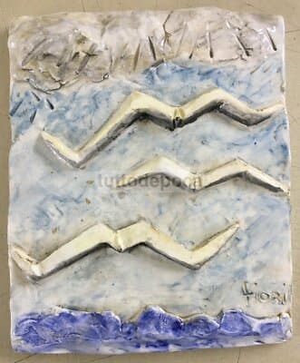 Arte Del '900: Marina Con Gabbiani. Artistica Ceramica Policroma, Artista Fiori