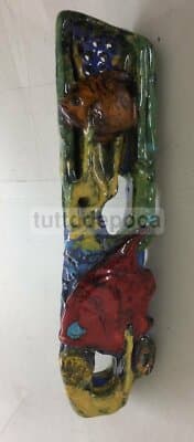 Artistica Ceramica Policroma Con Motivi Decorativi In Rilievo A Forma Di Pesci