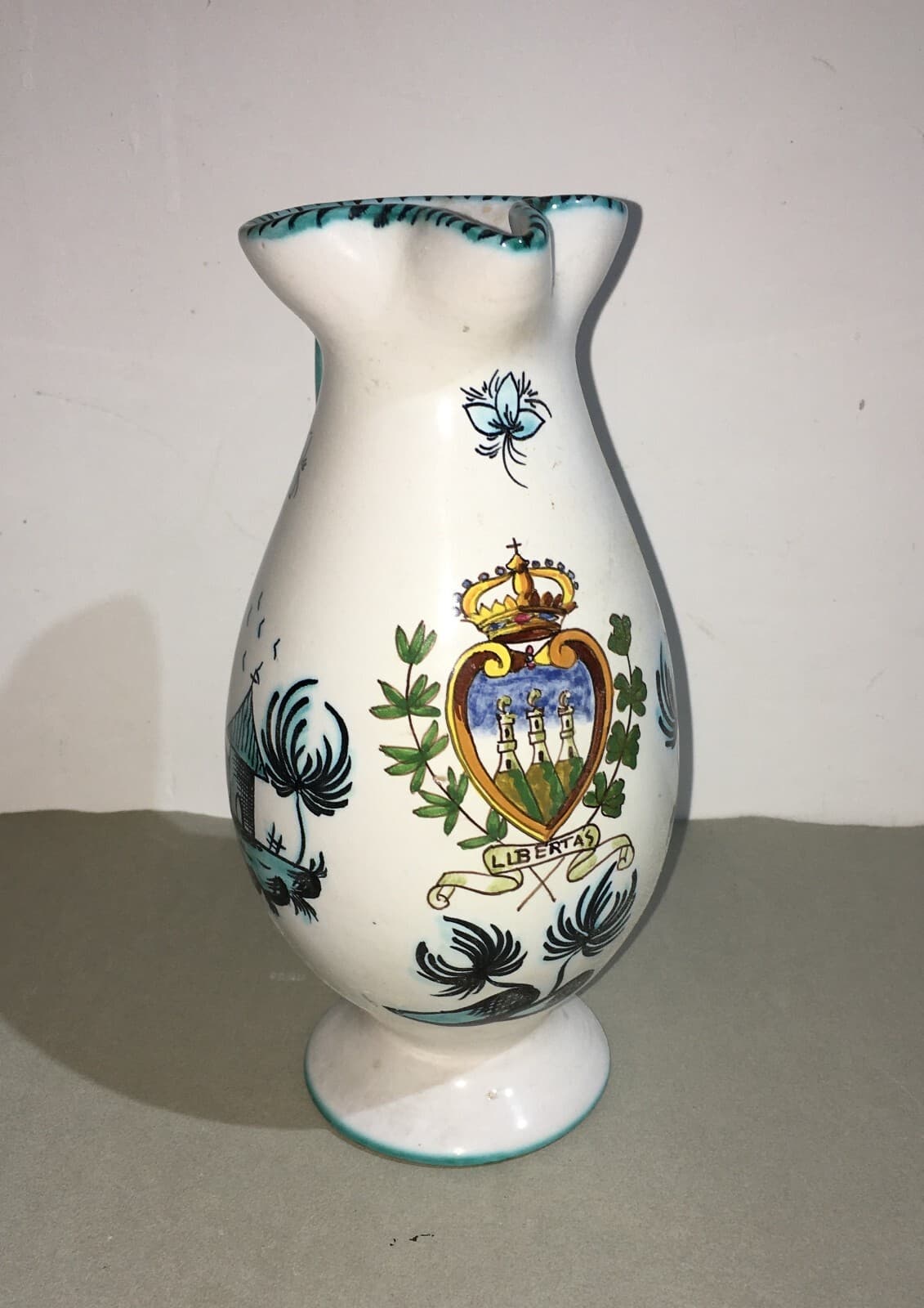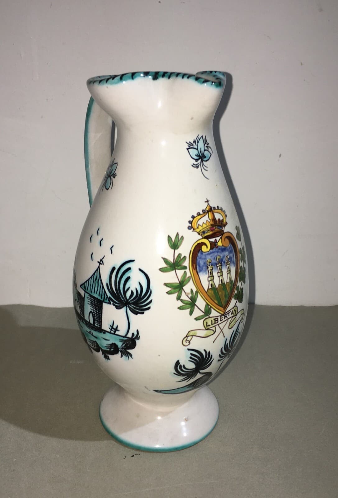 Brocca In Ceramica Con Stemma Araldico Della Repubblica Di San Marino