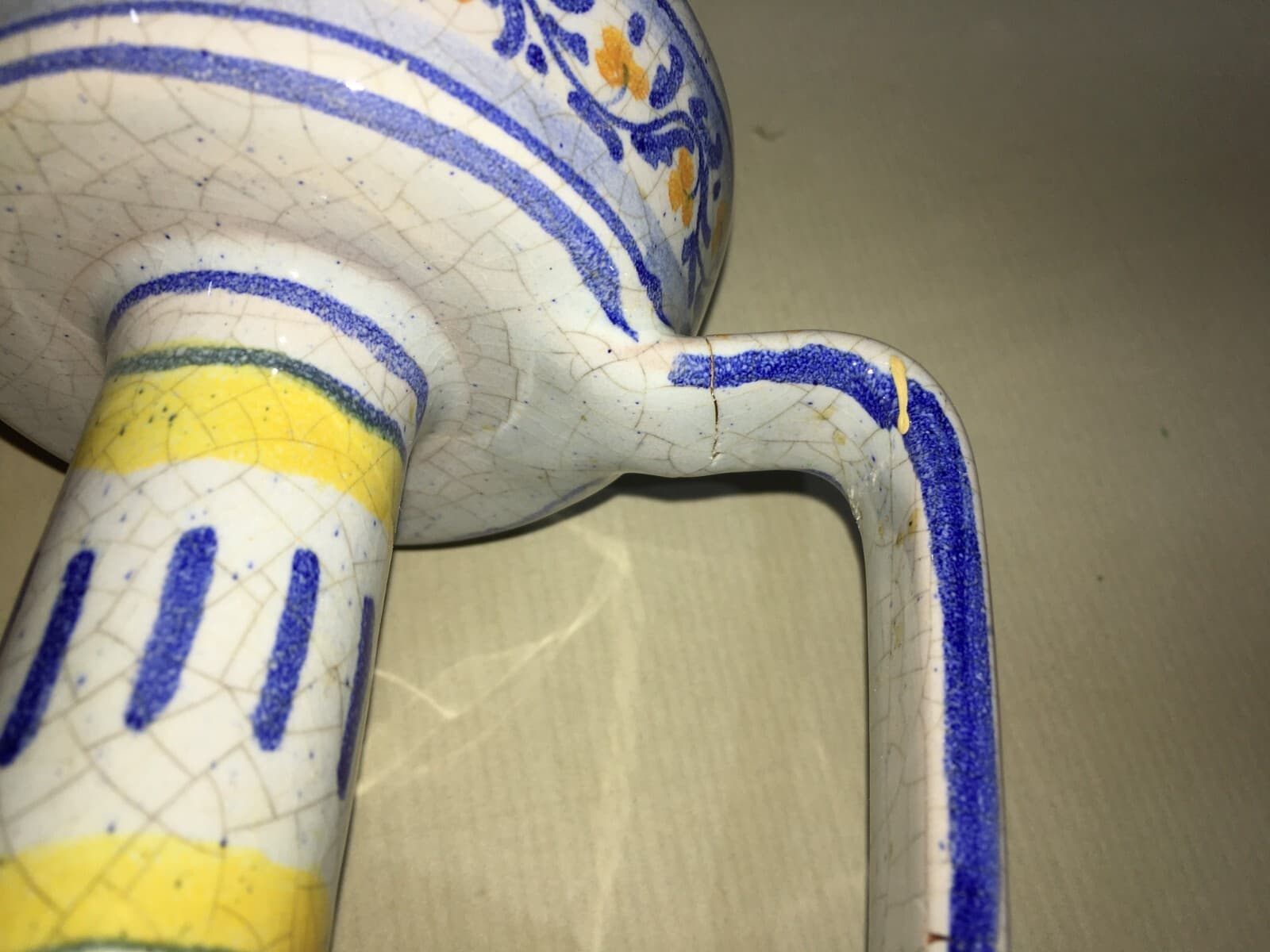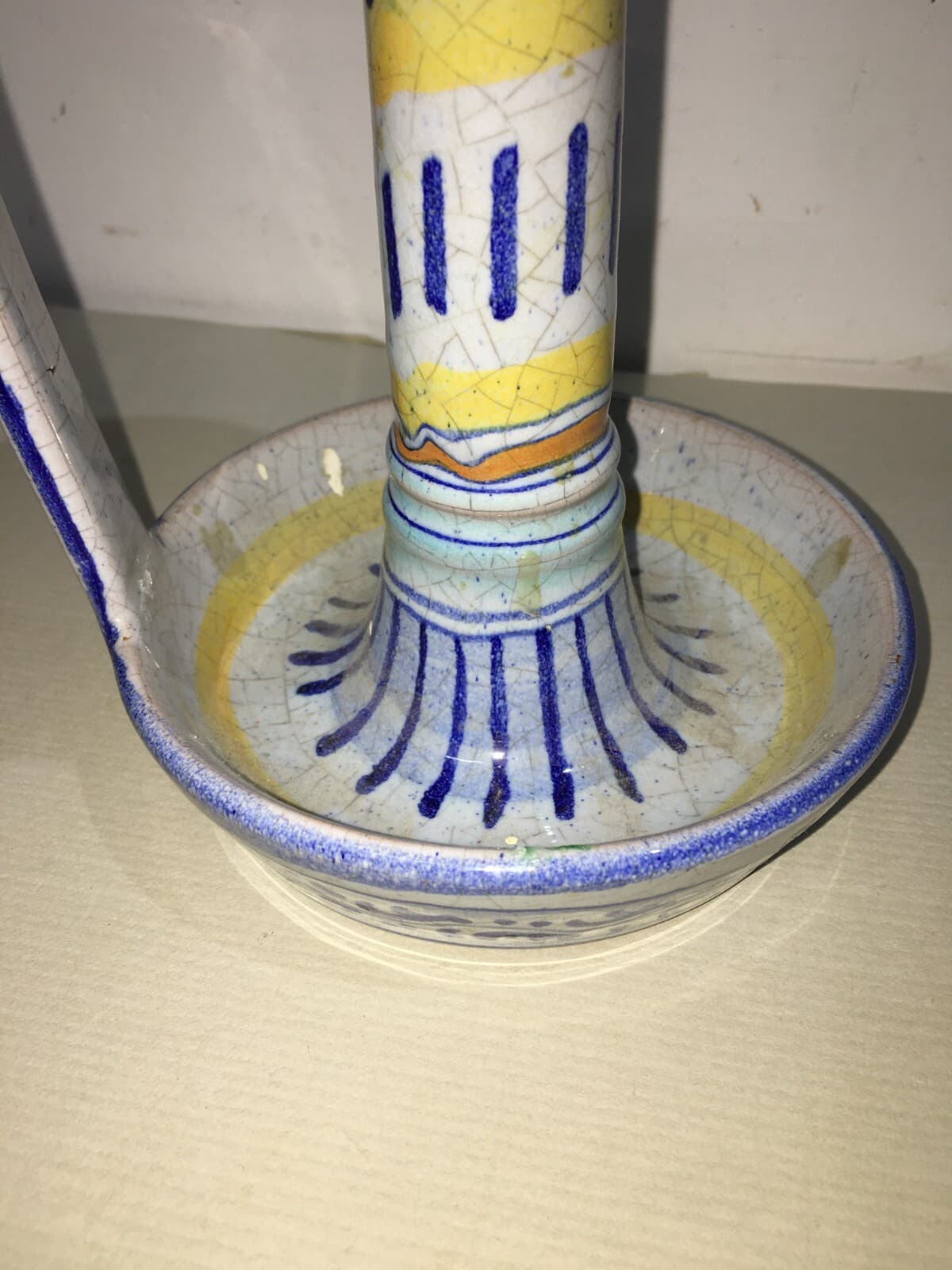 Marche, Urbino: Soprammobile Decorativo, Bugia Porta Candela In Ceramica Policroma