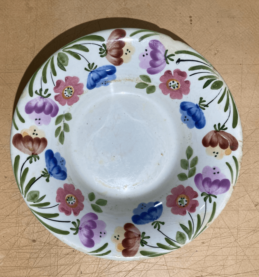 Piatto Antico In Porcellana Con Decori Floreali Policromi