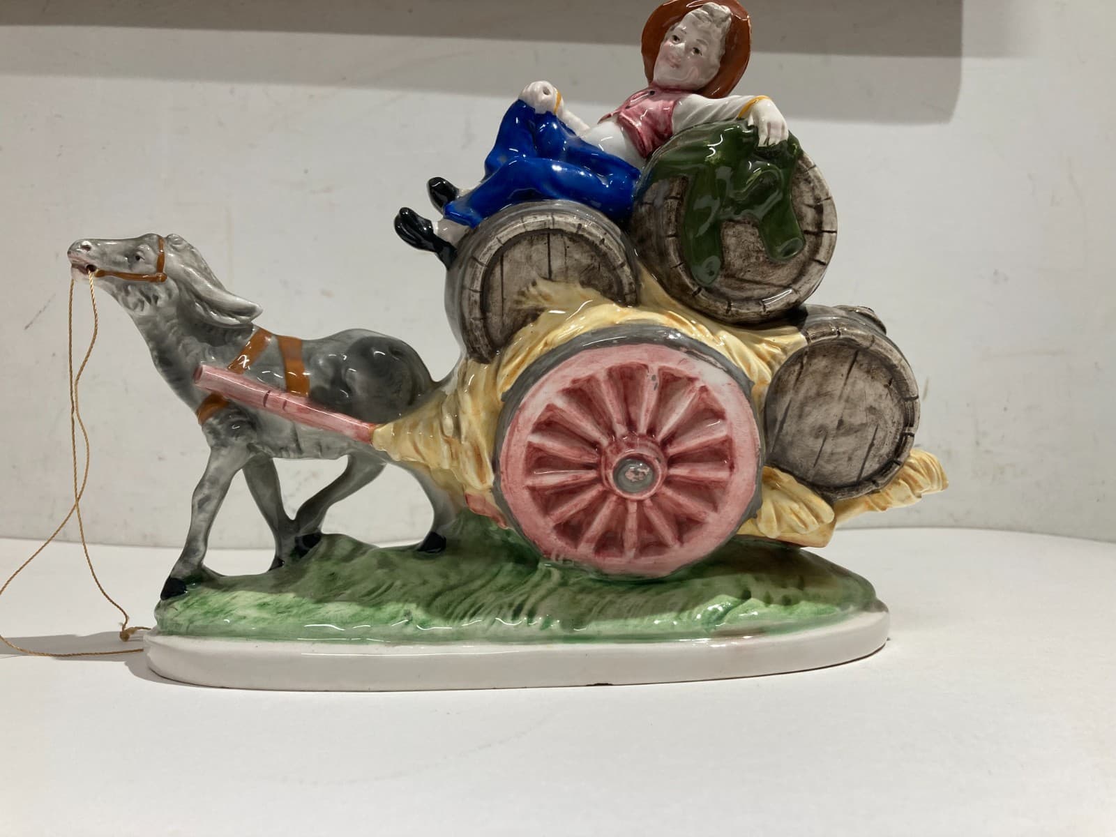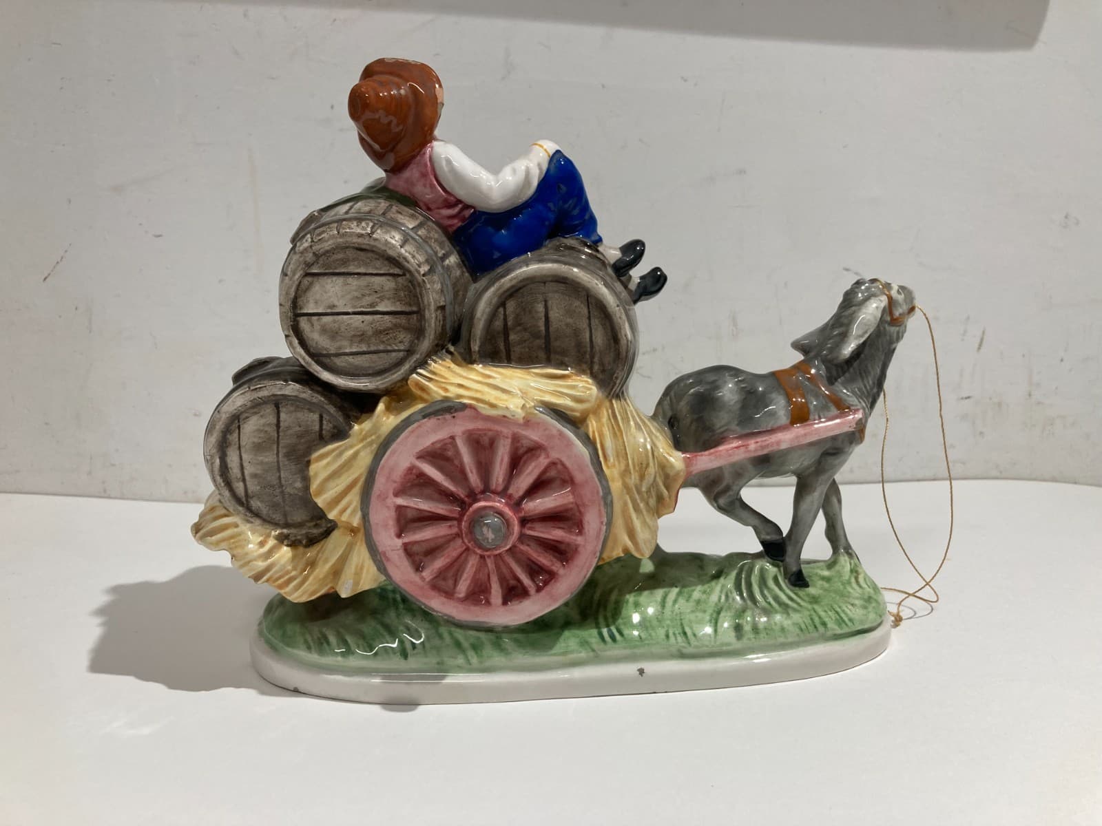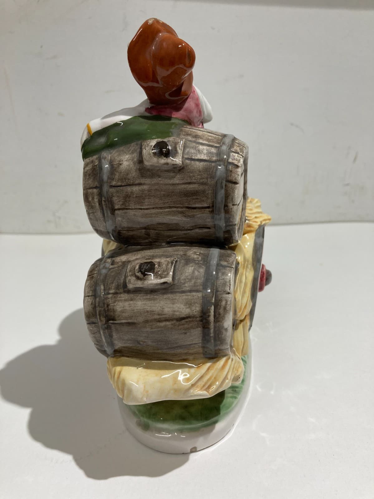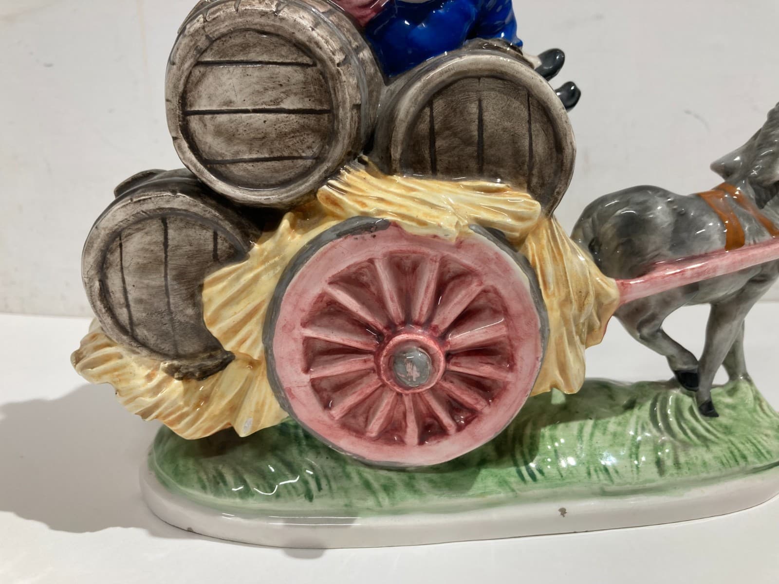 Gruppo Scultoreo In Ceramica Policroma: Carretto Con Botti Di Vino, Marcato