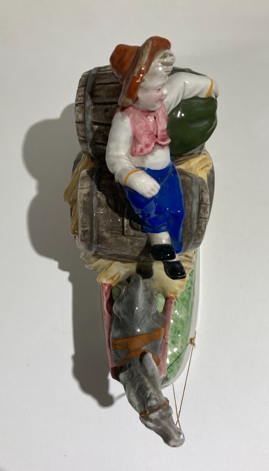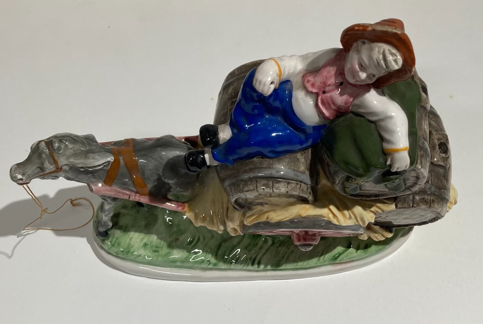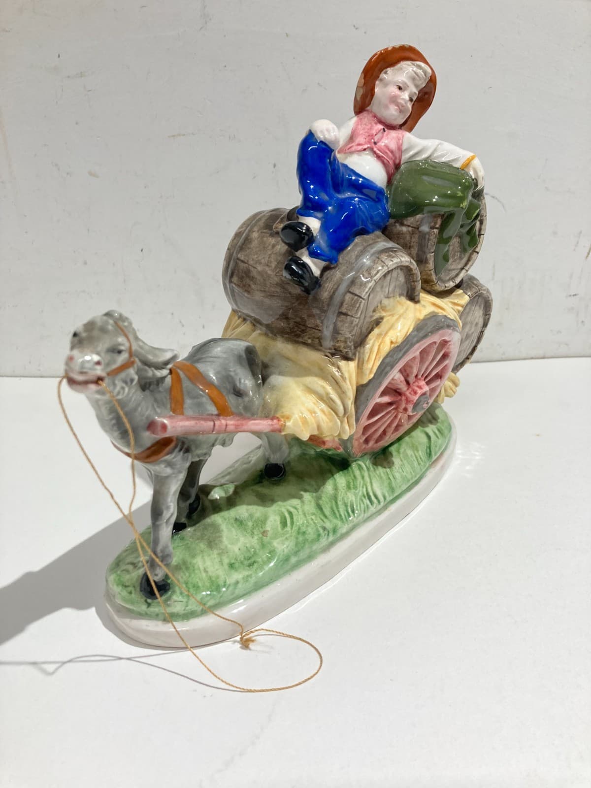 Gruppo Scultoreo In Ceramica Policroma: Carretto Con Botti Di Vino, Marcato