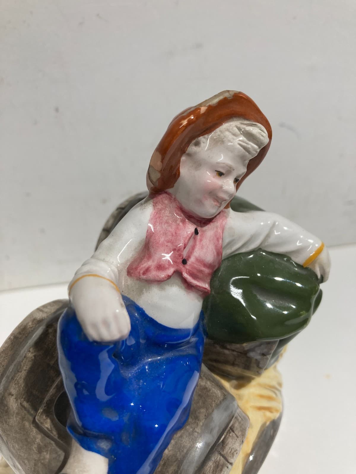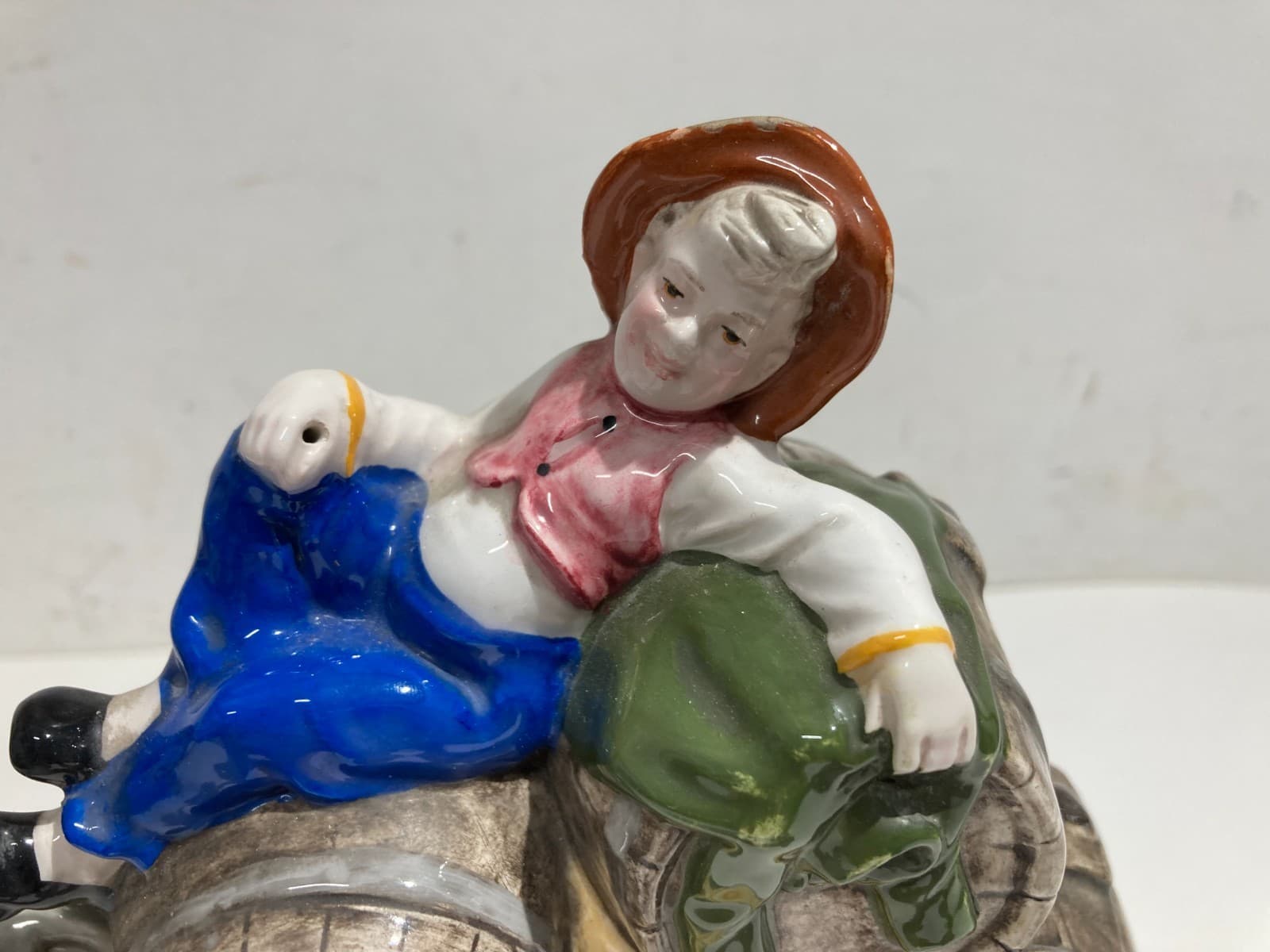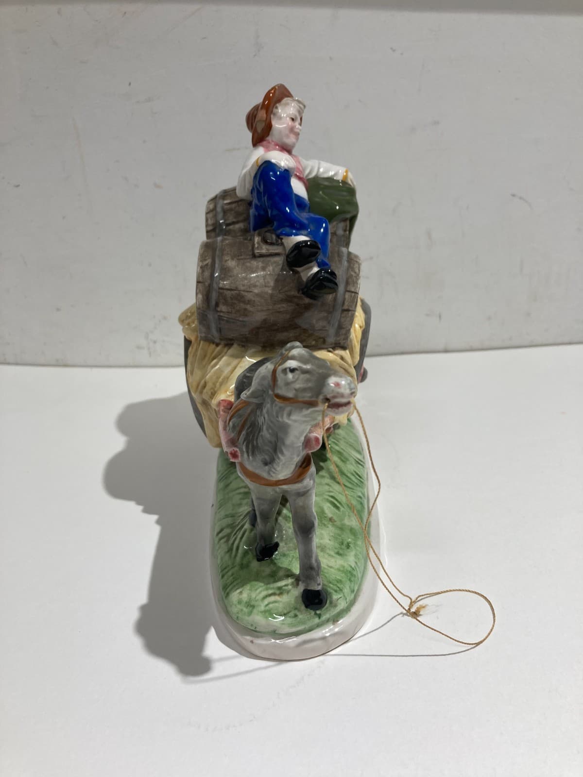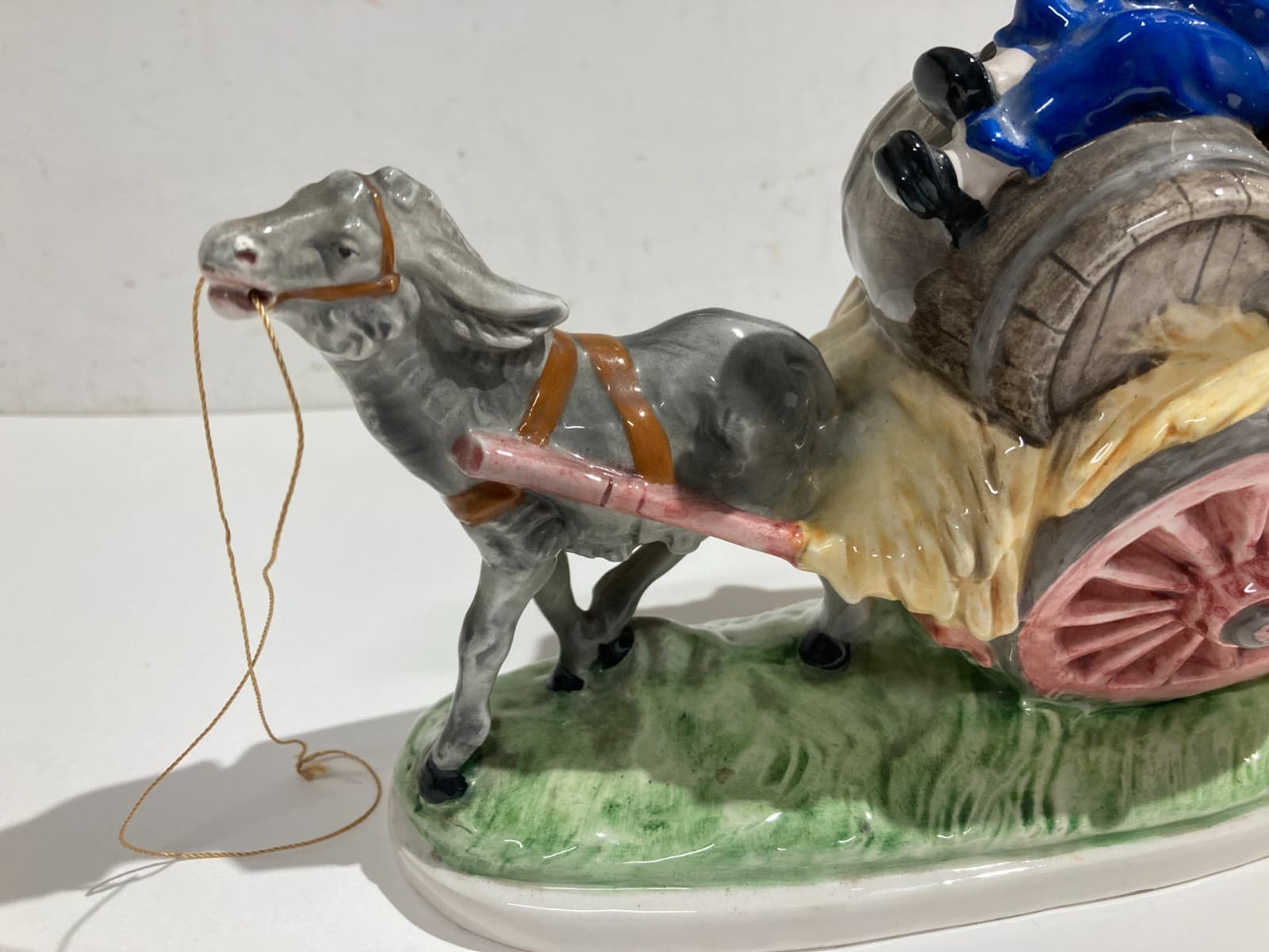 Gruppo Scultoreo In Ceramica Policroma: Carretto Con Botti Di Vino, Marcato