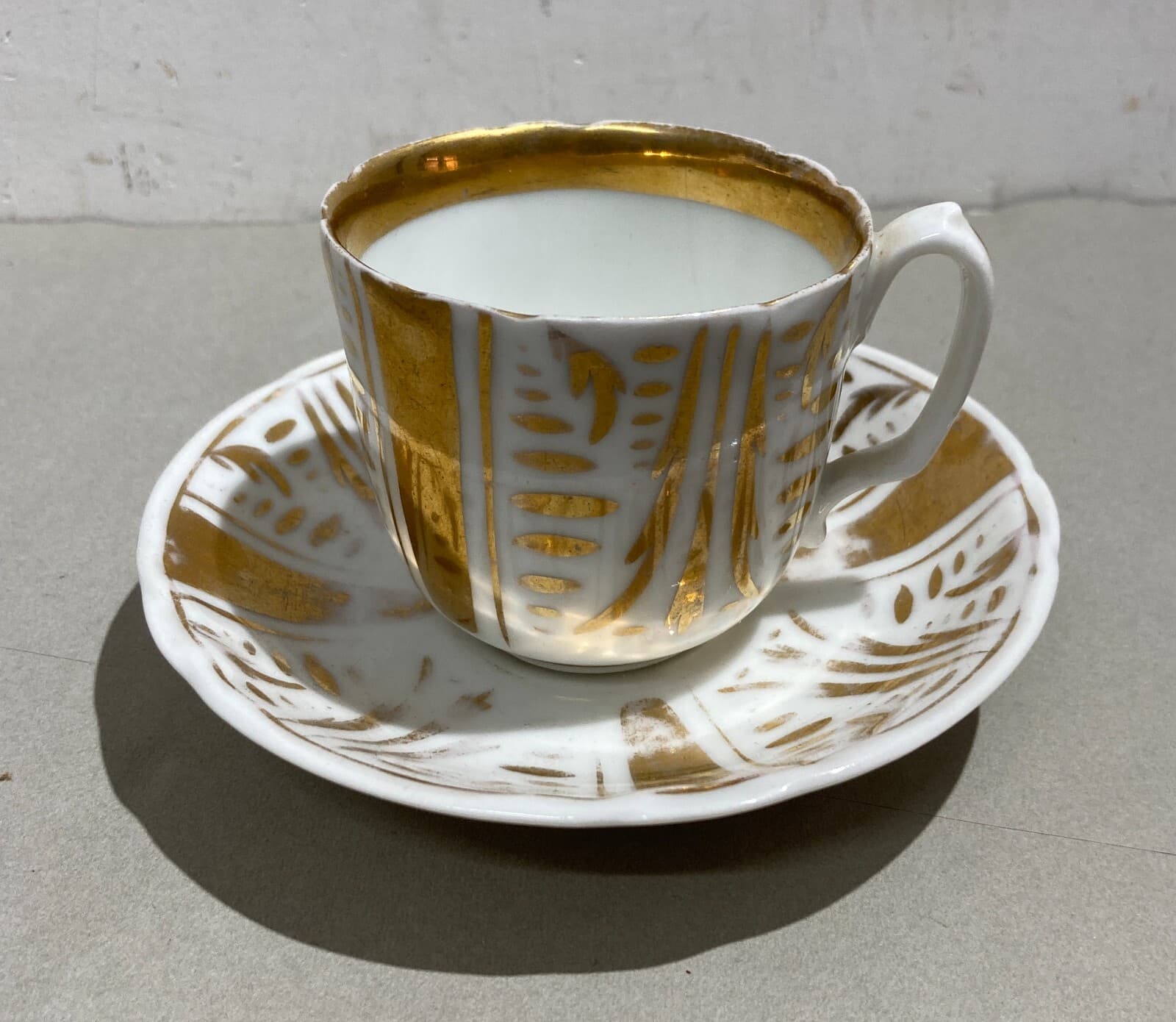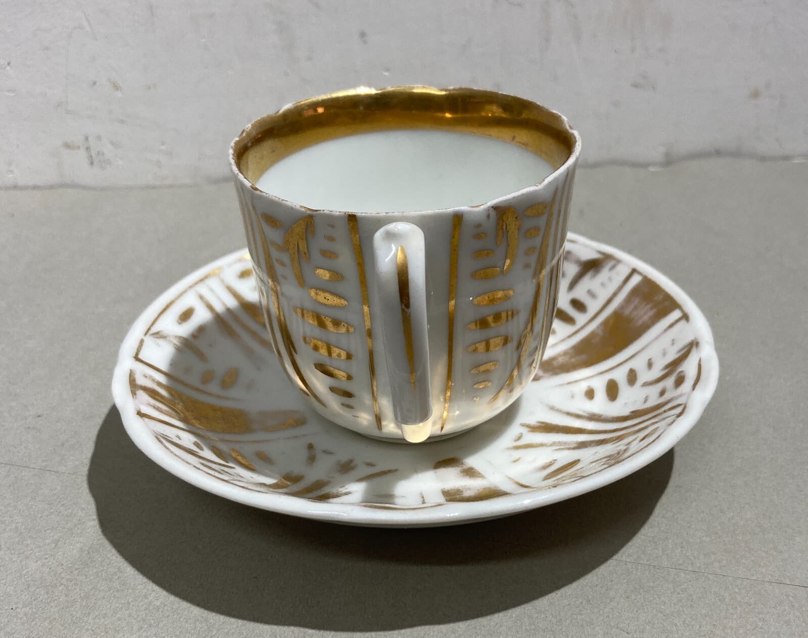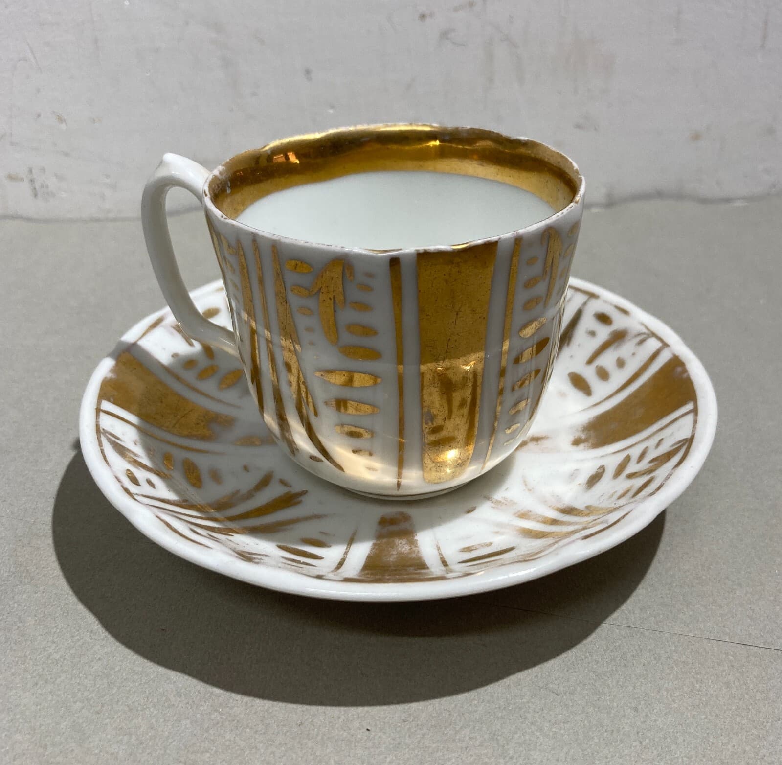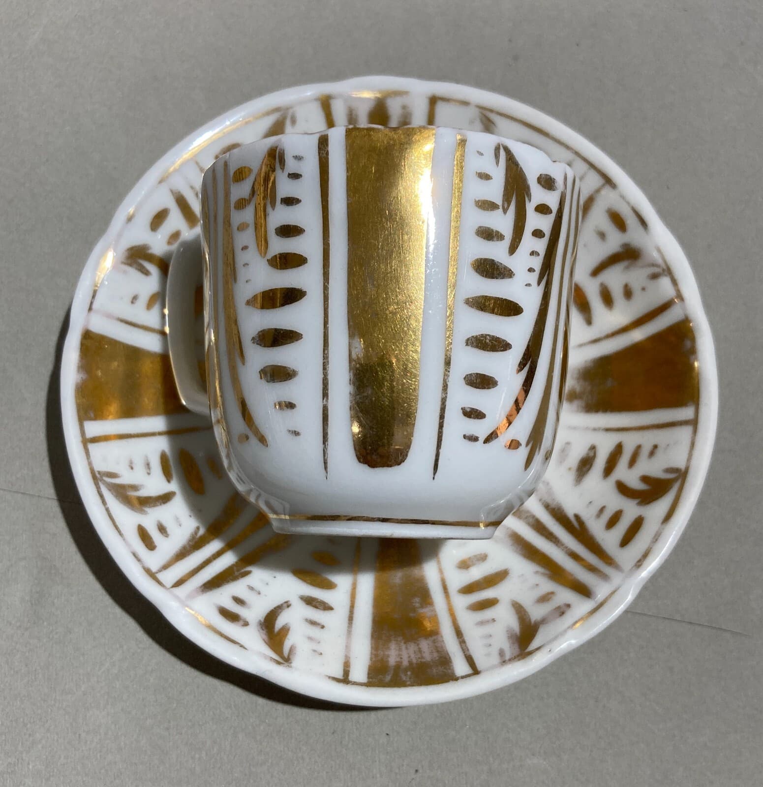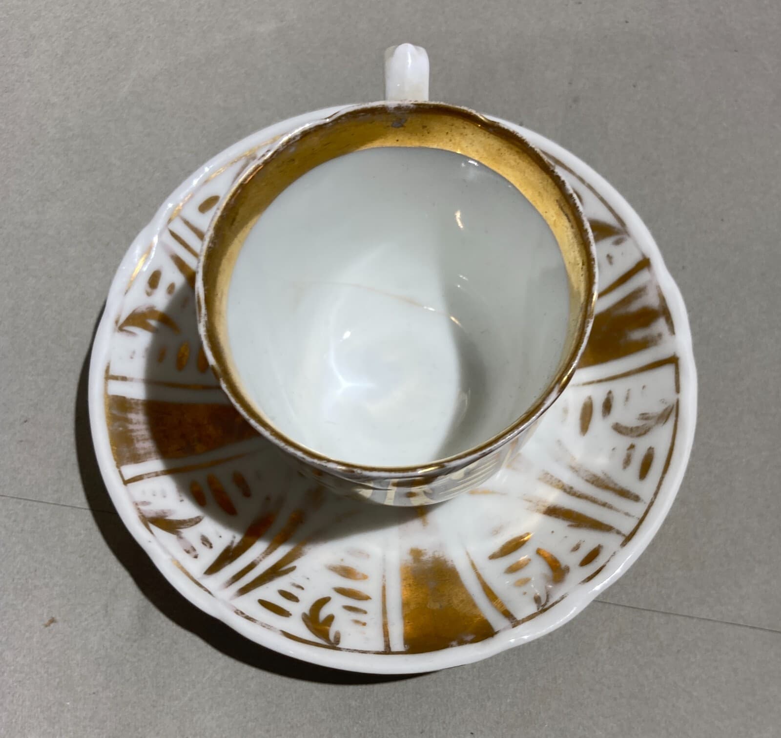 Soprammobile Decorativo In Porcellana Bianca E Dorata: Antica Tazza Con Piattino