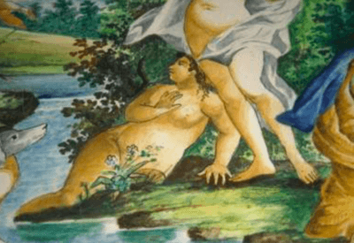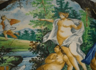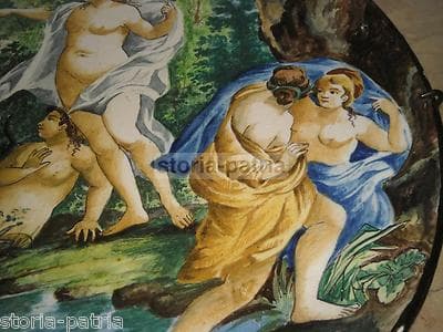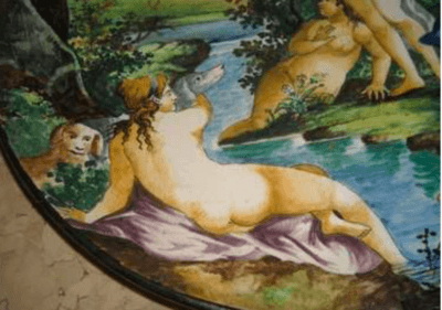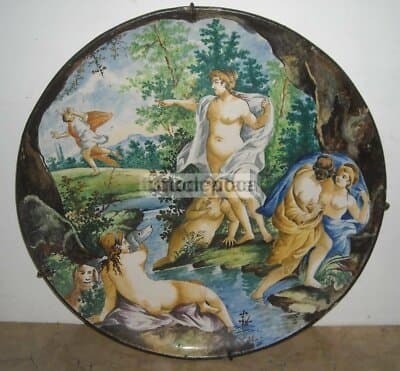 Arte E Mitologia: Piatto In Ceramica Con Scena Mitologica E Nudi Femminili