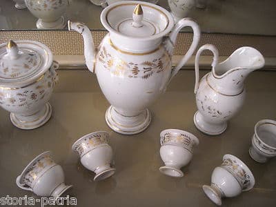 Servizio Da Caffè In Porcellana Bianca E Oro Stile Impero, Area Napoletana, XIX Secolo