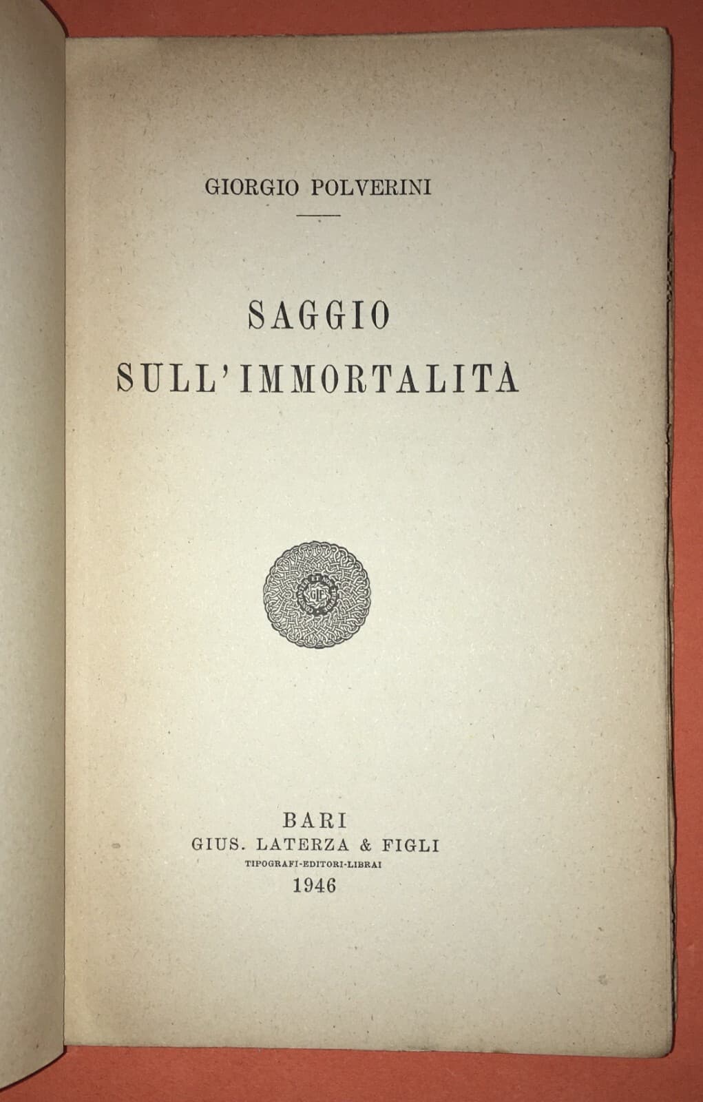 Saggio Sull'Immortalità Giorgio Polverini Laterza, 1946