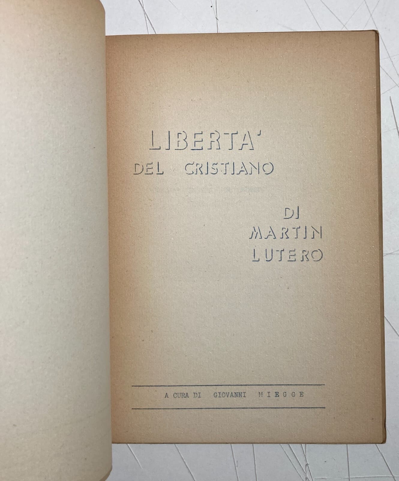 Lutero Libertà Del Cristiano Miegge Federazione Unioni Valdesi Edizione 1957