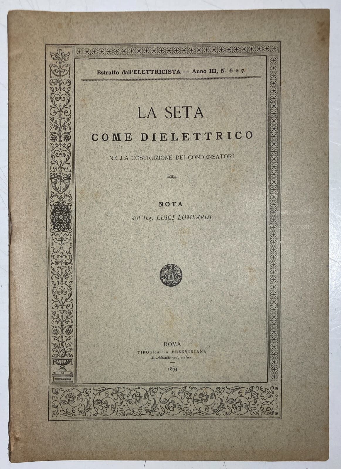 Elettricità Ed Elettrotecnica: La Seta Nei Condensatori. Antica Edizione, Luigi Lombardi