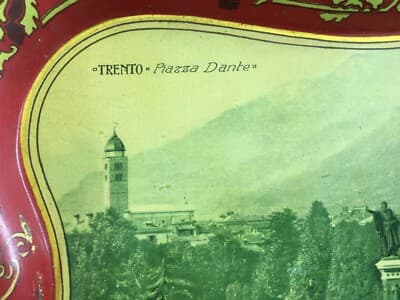 Trento: Piazza Dante. Antica Veduta, Vassoio Decorativo Pubblicitario E Araldica, Primo Novecento.